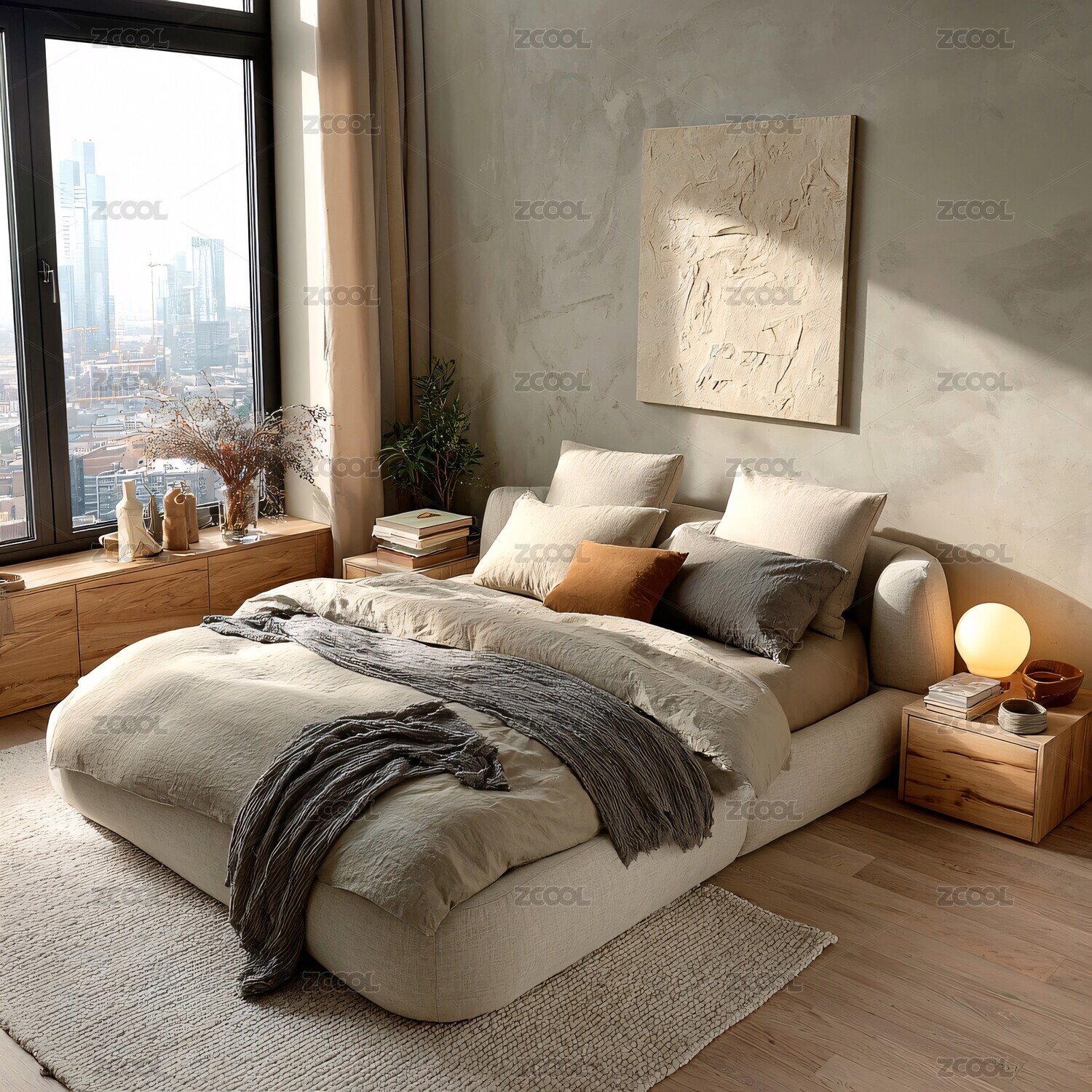 现代简约风格温馨卧室场景
