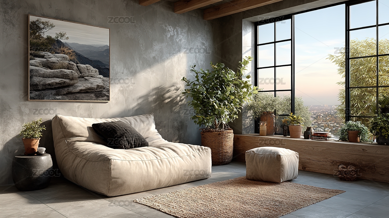 卧室,床头柜,植物,挂画,窗户,室内,简约,温馨,家居,装饰