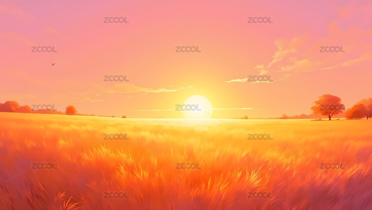 夕阳下的草原飞鸟