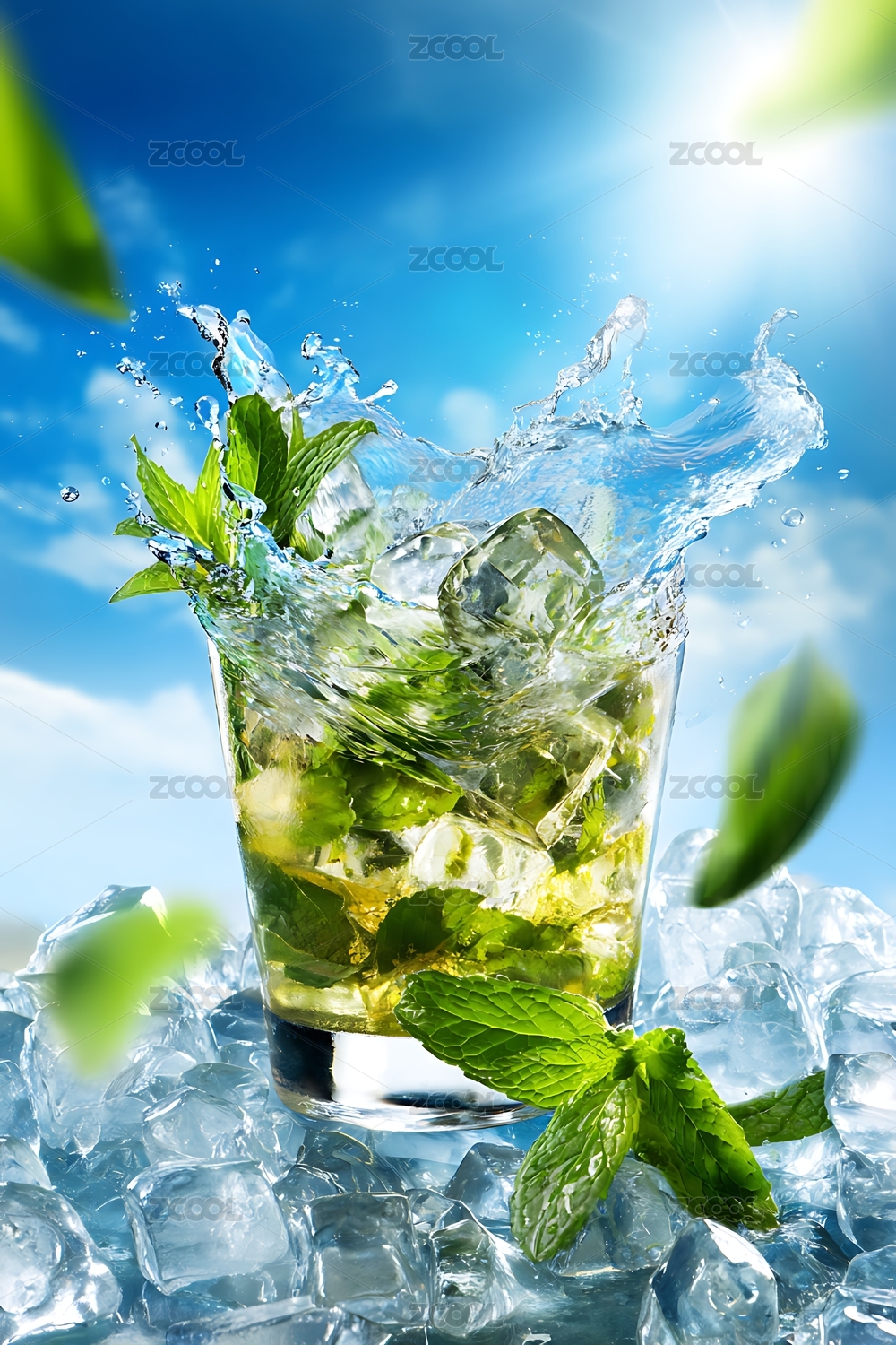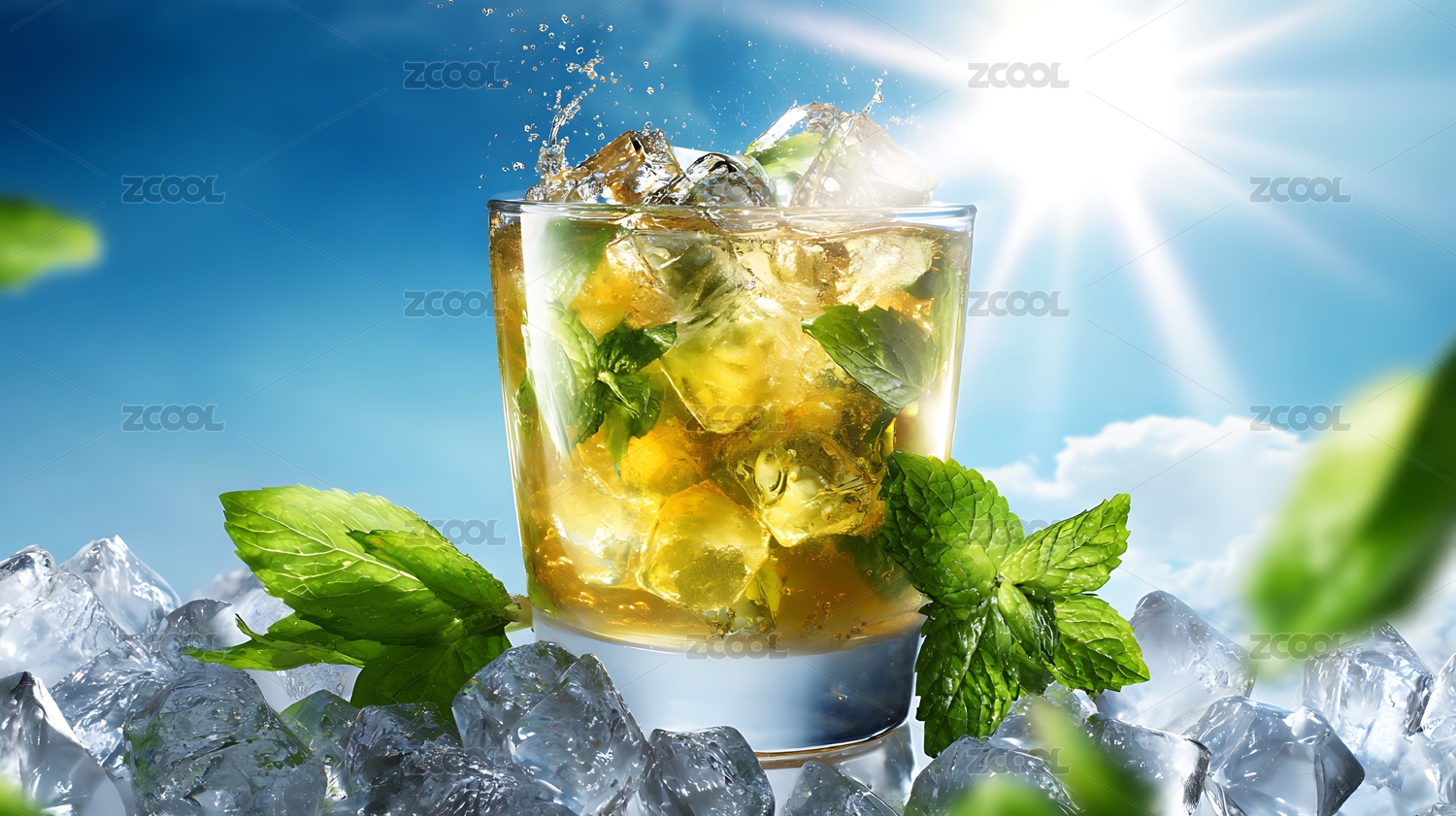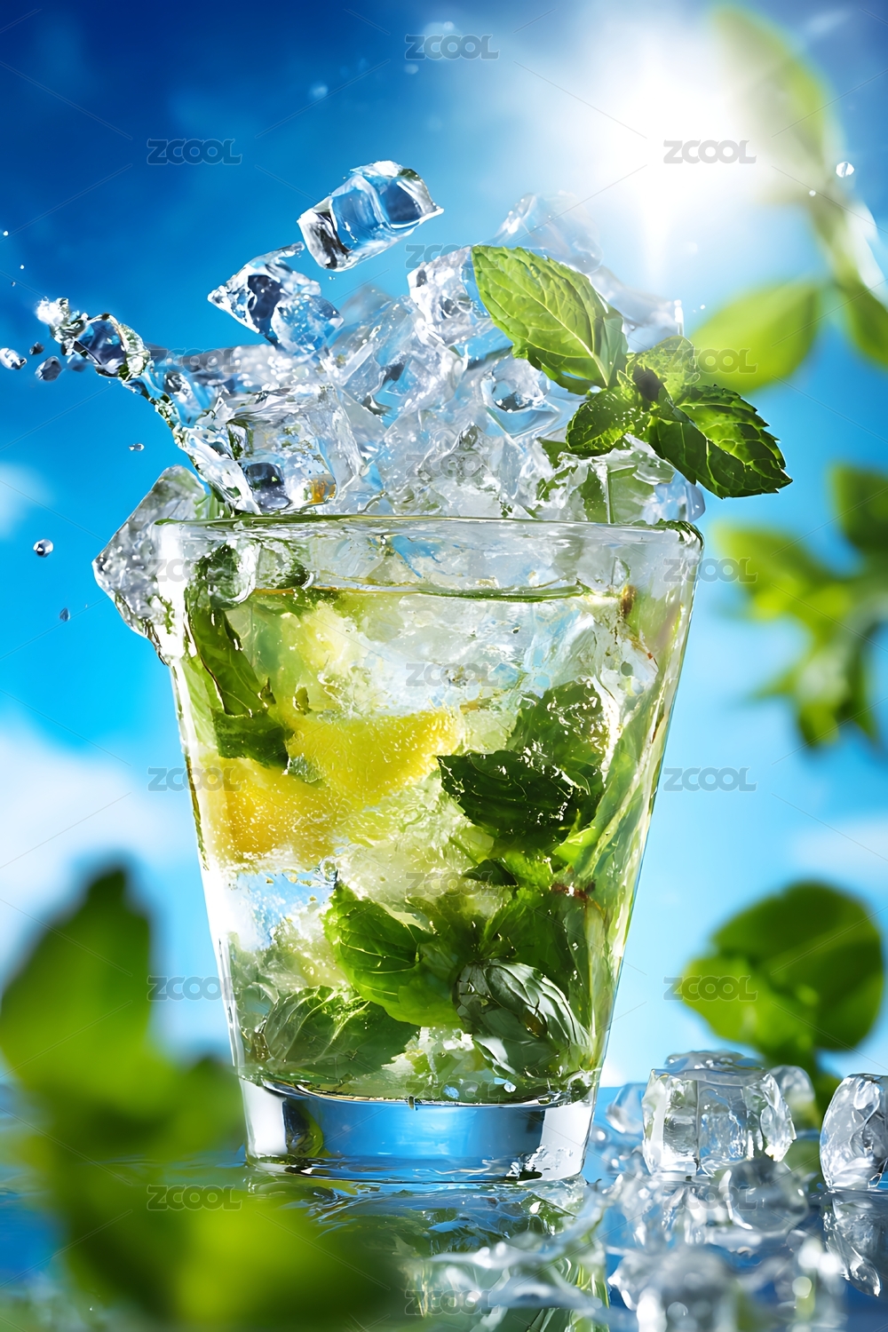 新鲜,鸡尾酒,饮品,冰块,清凉,夏日,薄荷,解渴,爽口,冰镇