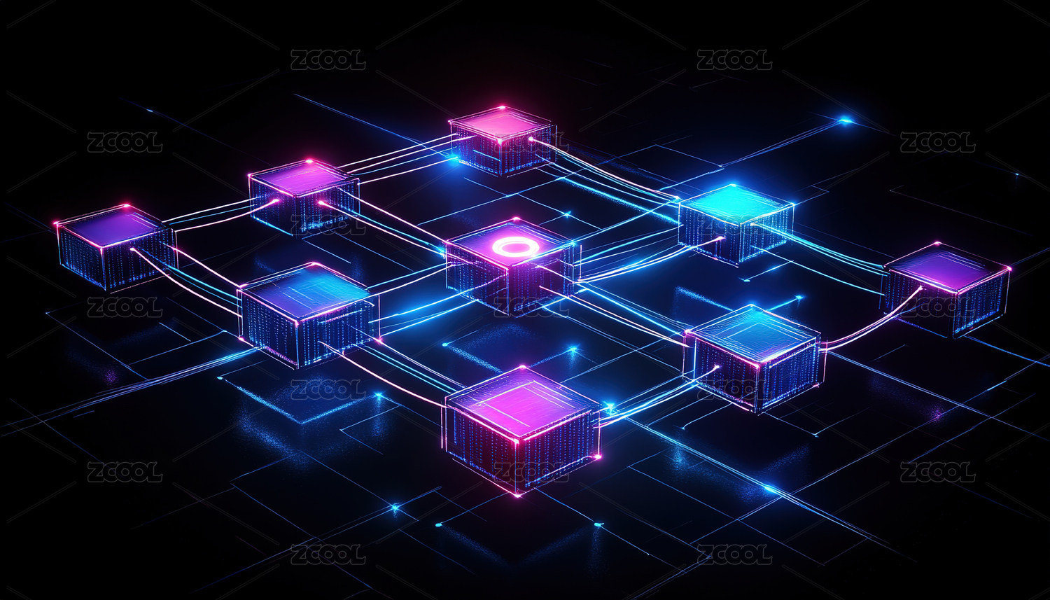 科技,网络,数据,立方体,发光,连接,电路,蓝色,紫色,未来