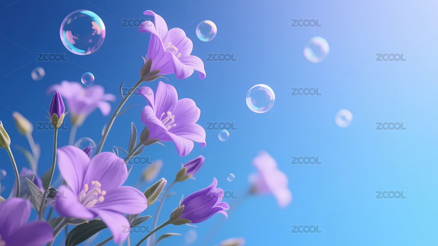 渐变,天空,明亮,背景,透明,清新,紫色,花朵,泡泡,色调