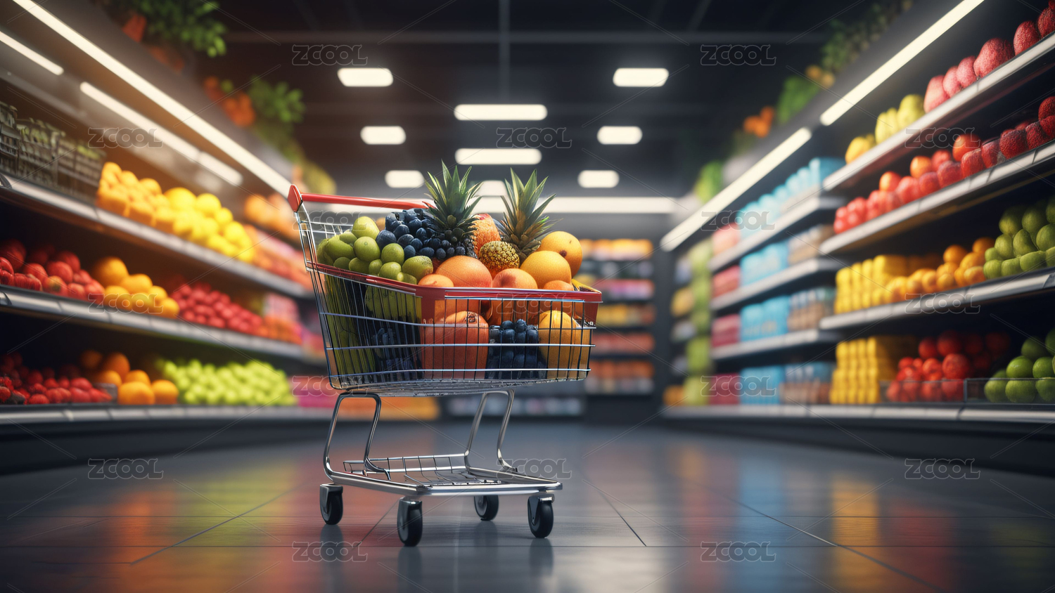 超市农贸市场货架上的瓜果蔬菜扁平插画