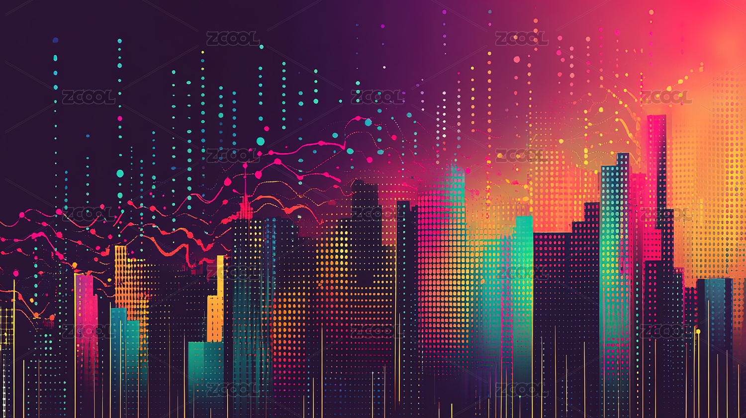 现代科技点状城市景观摩天大楼矢量插图素材