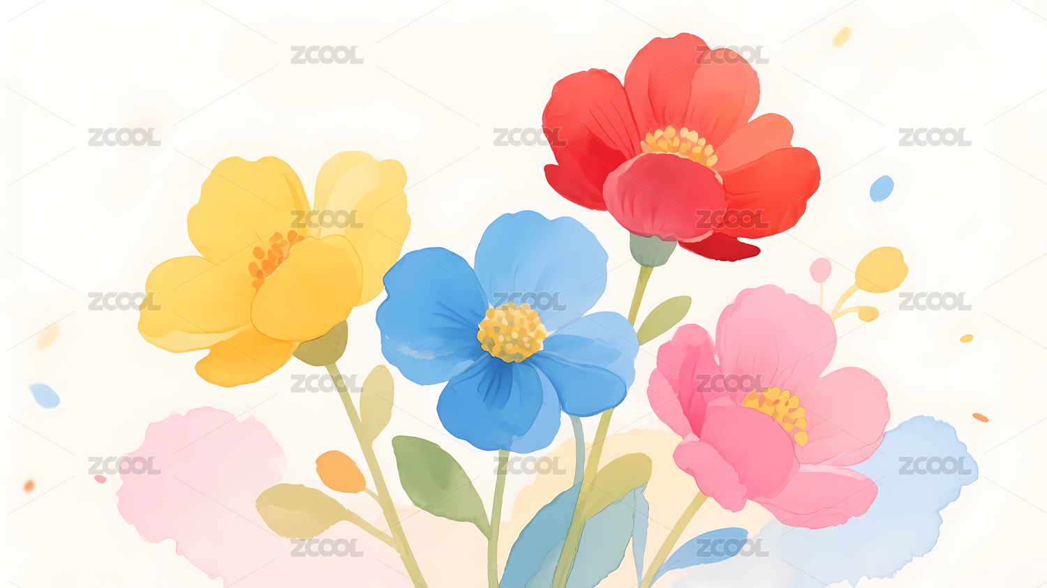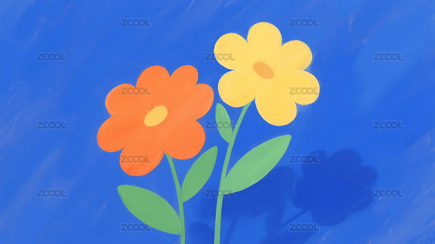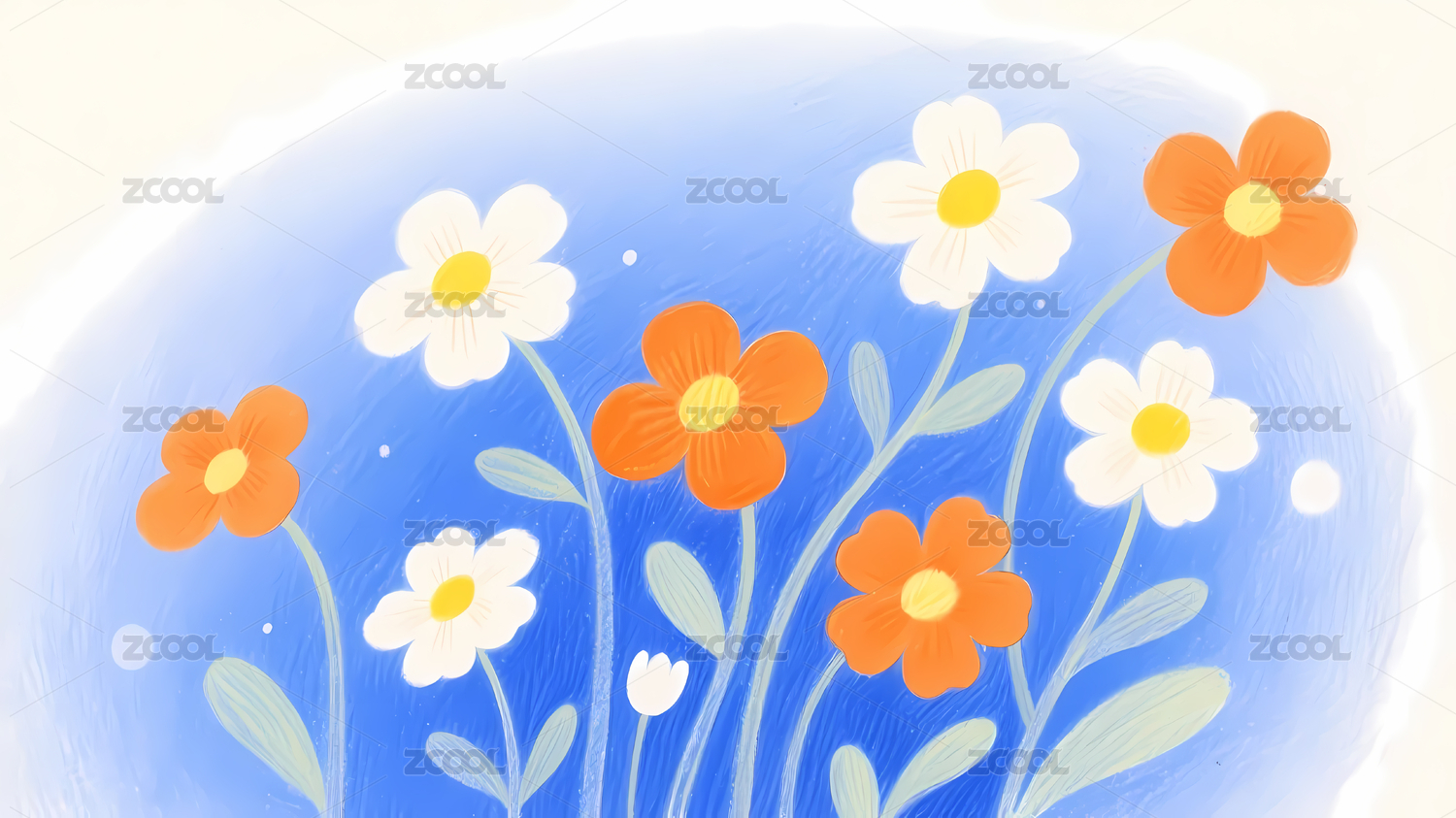 花朵,色彩,蓝色,橙色,白色,背景,浅蓝色,清新,明亮,簇