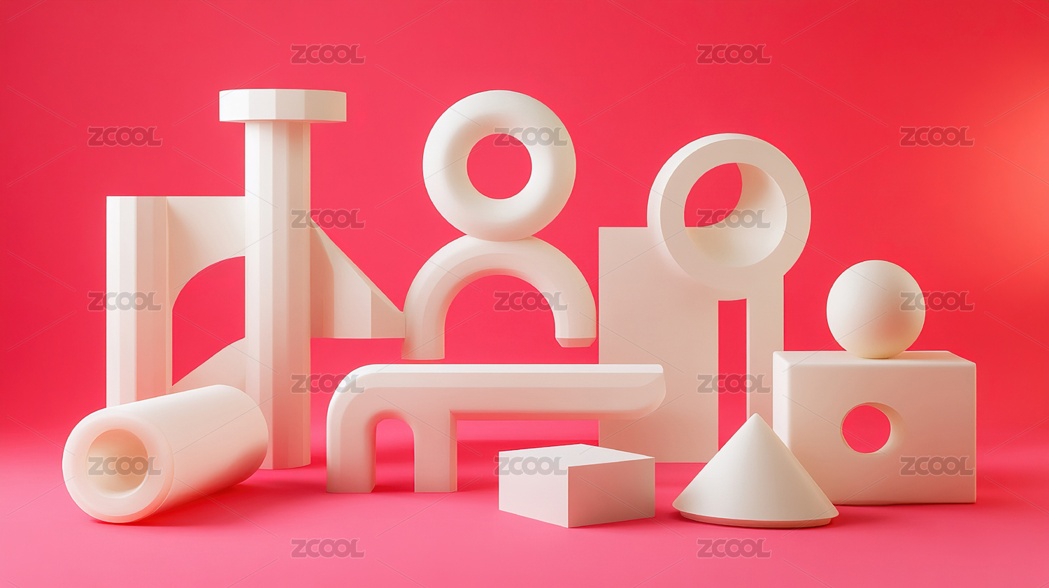 粉色,立体,几何,堆叠,艺术,图形,插画,设计,简约,创意