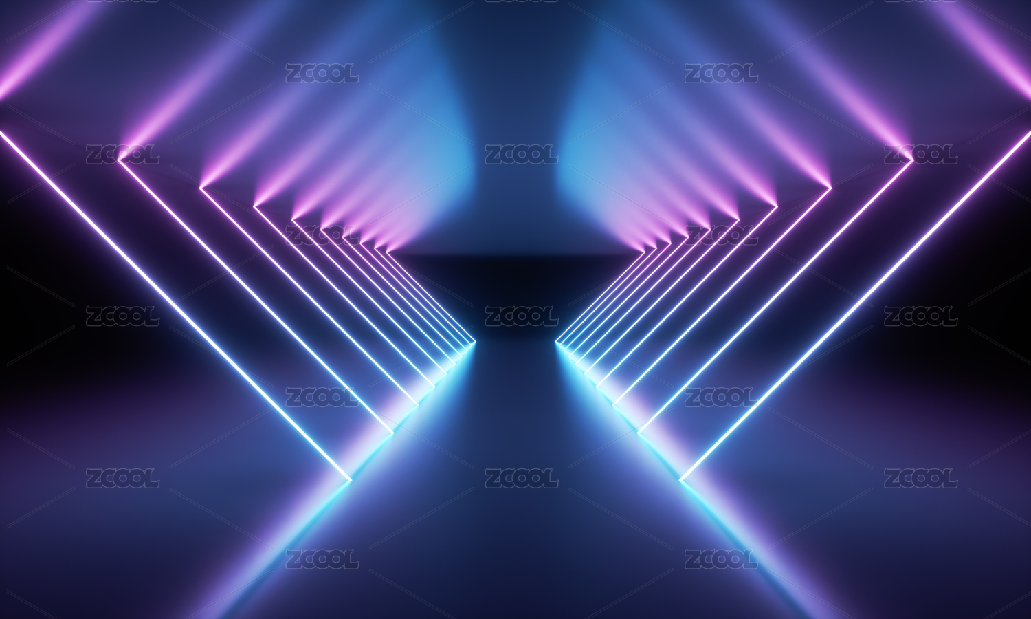 3D渲染科幻延伸几何隧道霓虹灯线概念插图