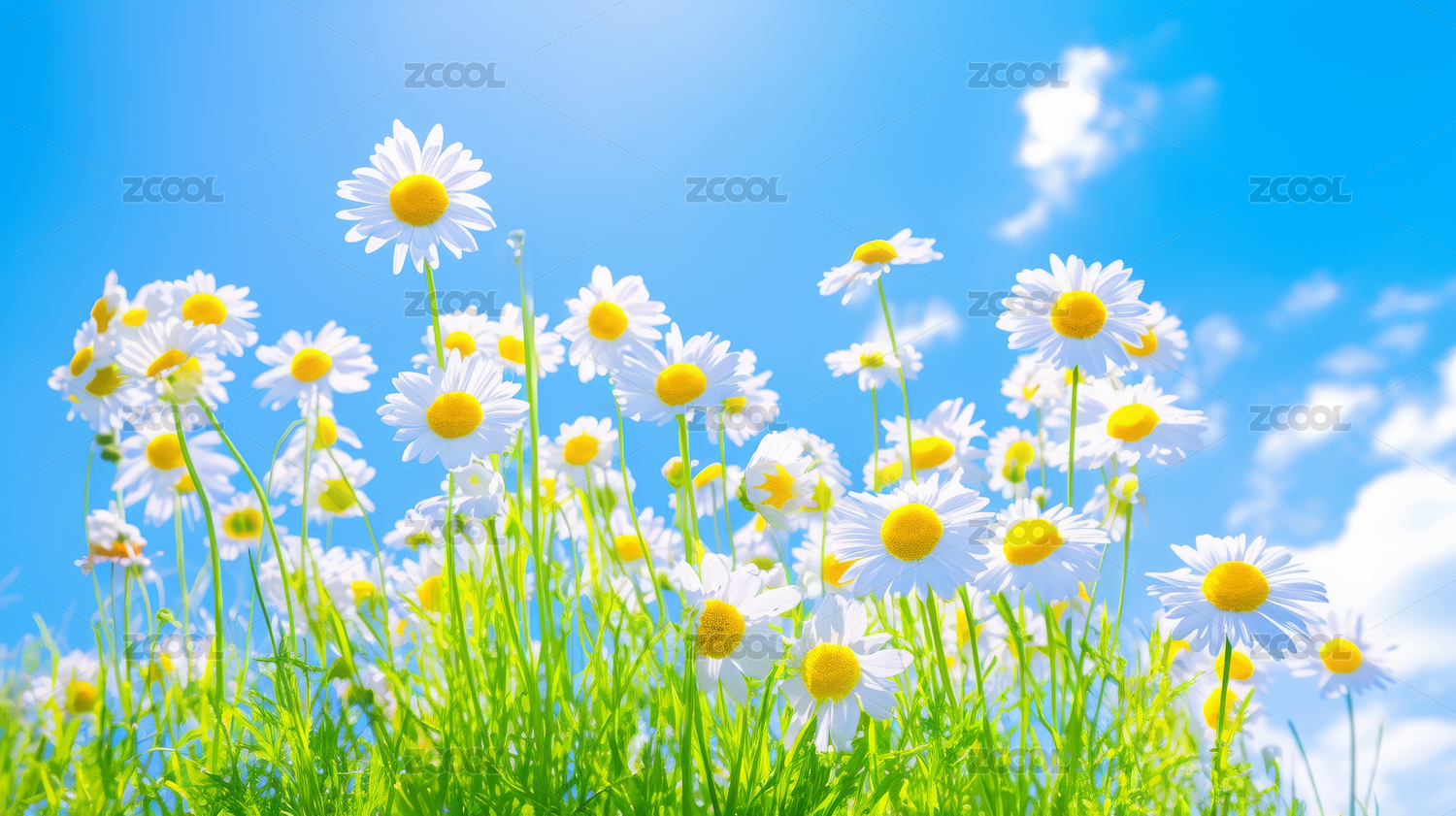 白色,花朵,绿色,黄色,天空,蓝天,白云,雏菊,花心,茎叶