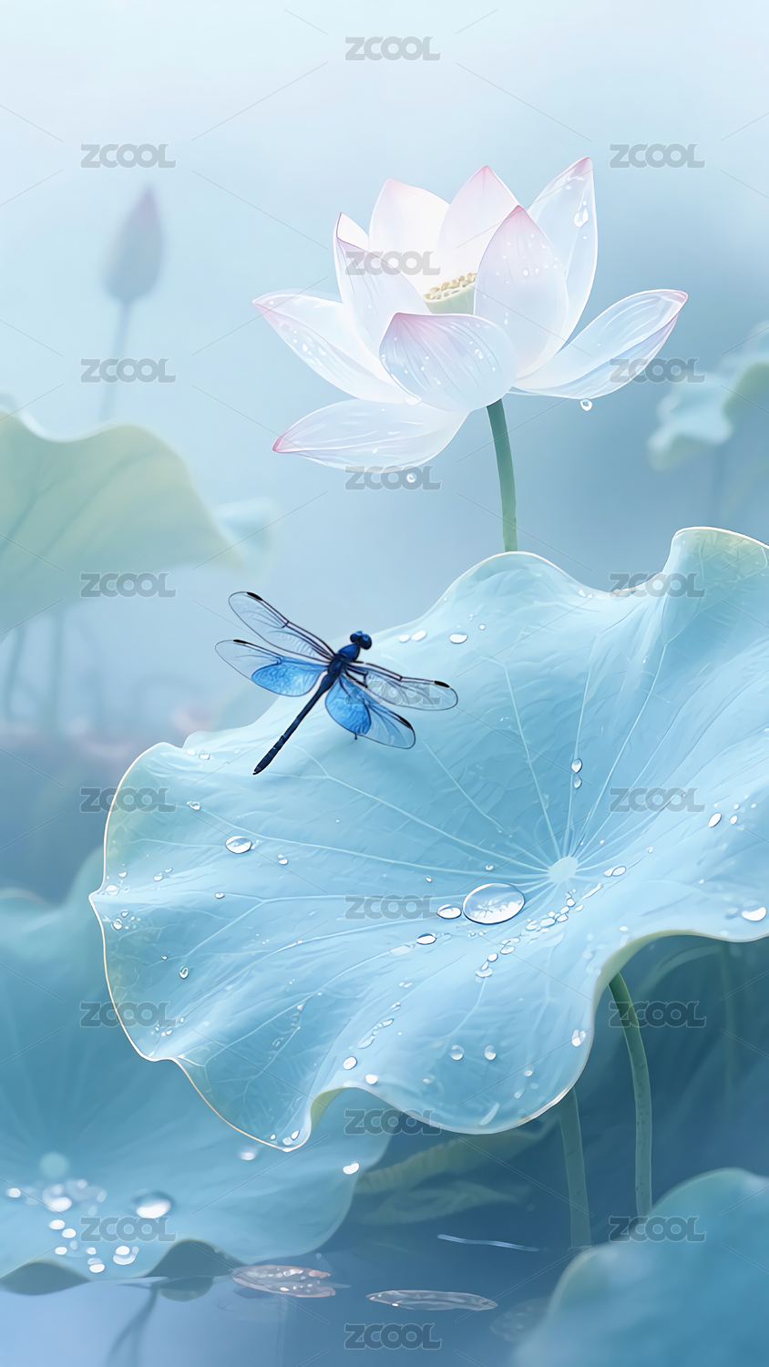 蜻蜓,露珠,植物,荷花,背景,插画,水墨画,写意,壁纸,绿色