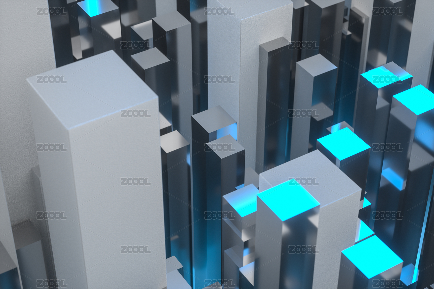 高低起伏的立方体构成的科技感场景 三维渲染