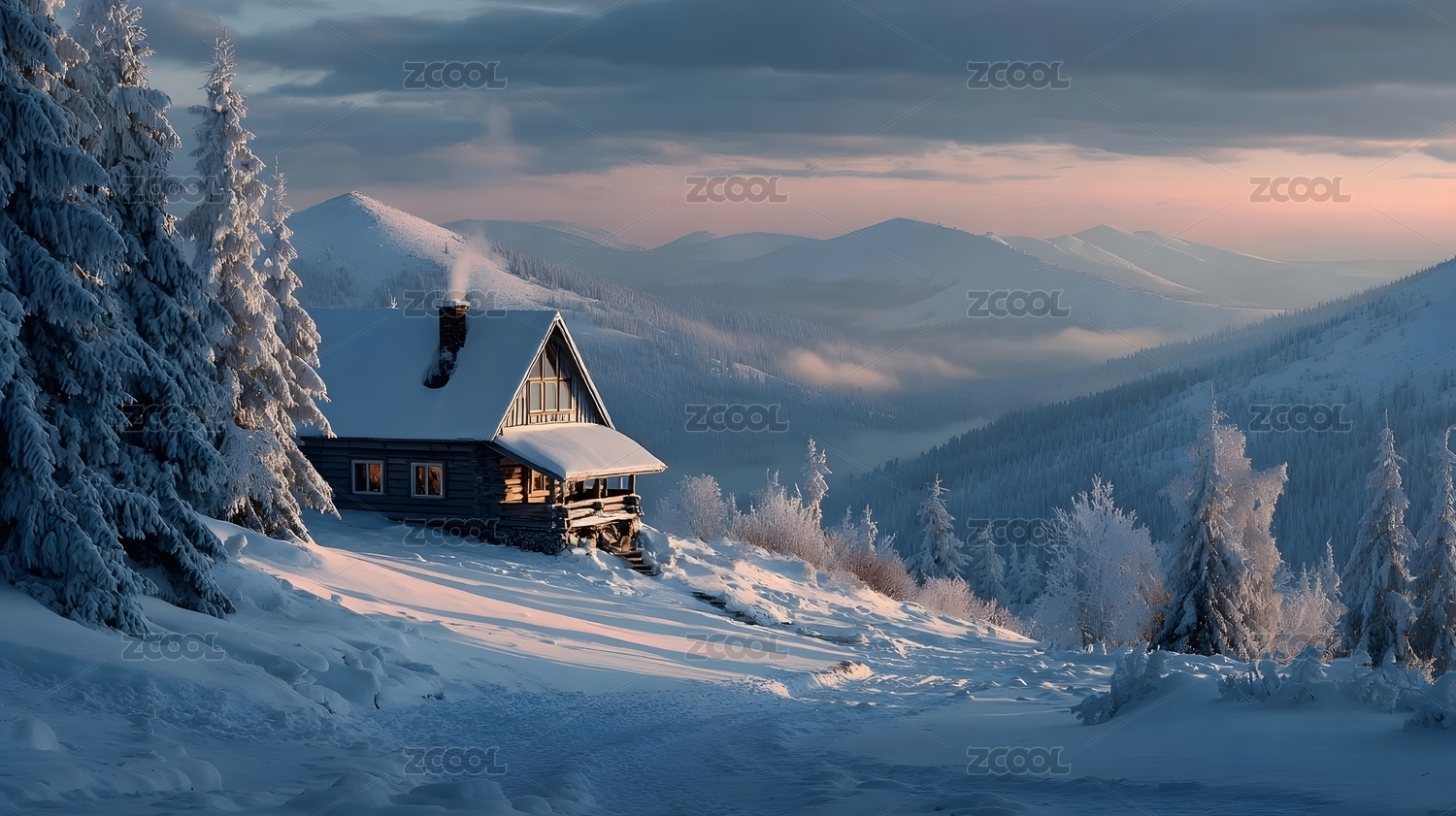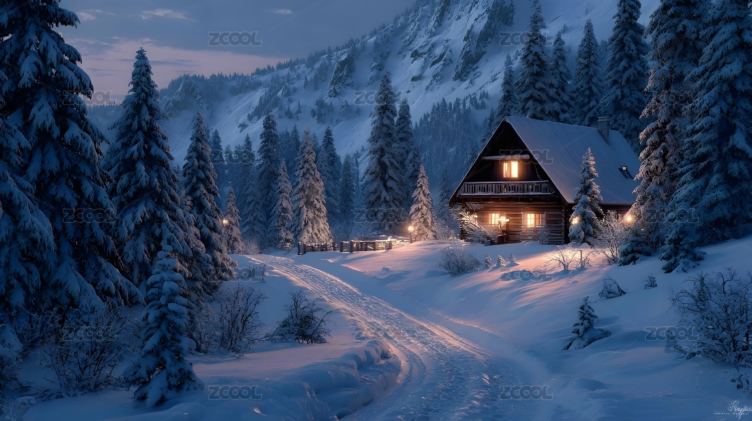 雪地,道路,树木,冬天,雪景,静谧,自然,山脉,寒冷,景色