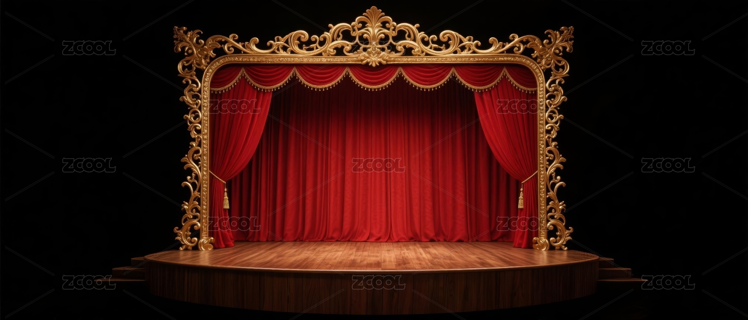背景,金色,红色,庄重,华丽,舞台,框架,窗帘,木质,地面