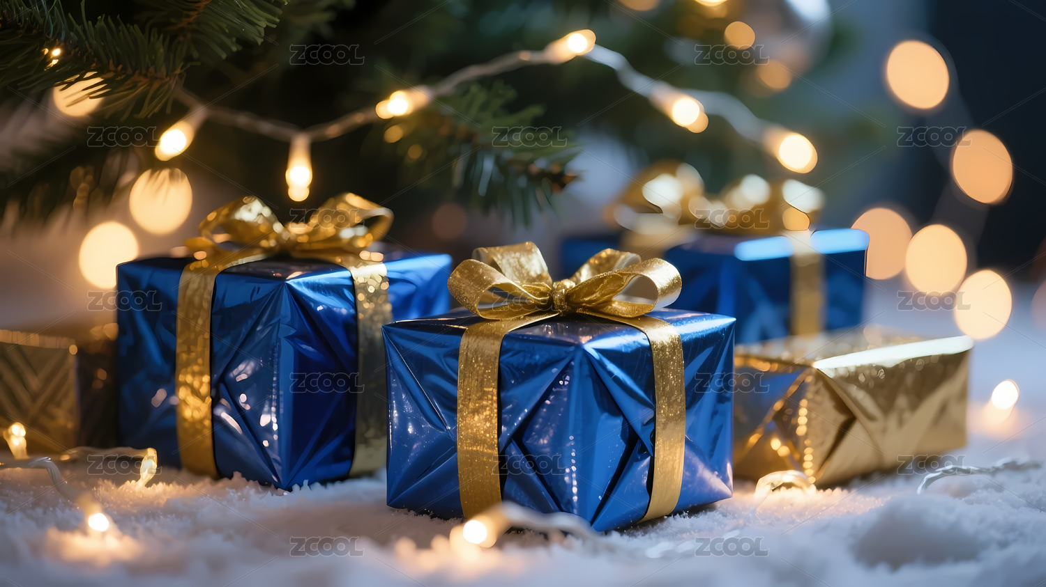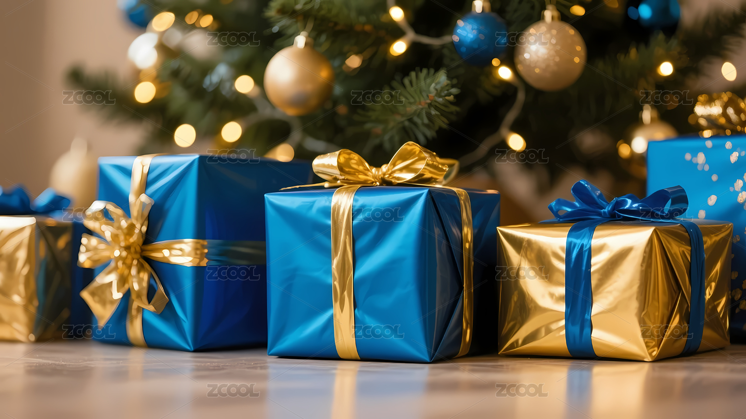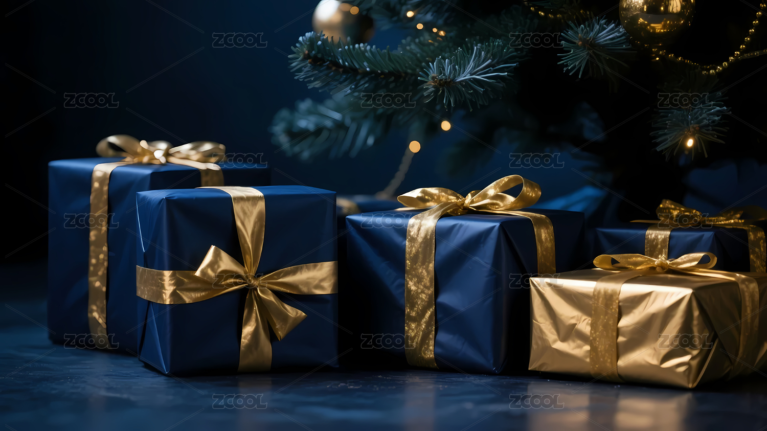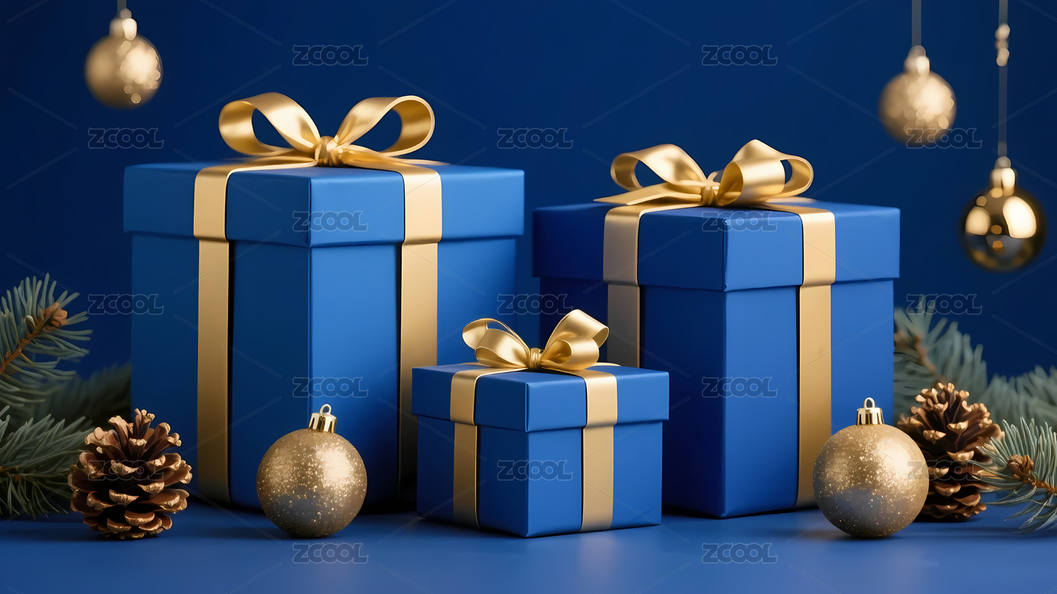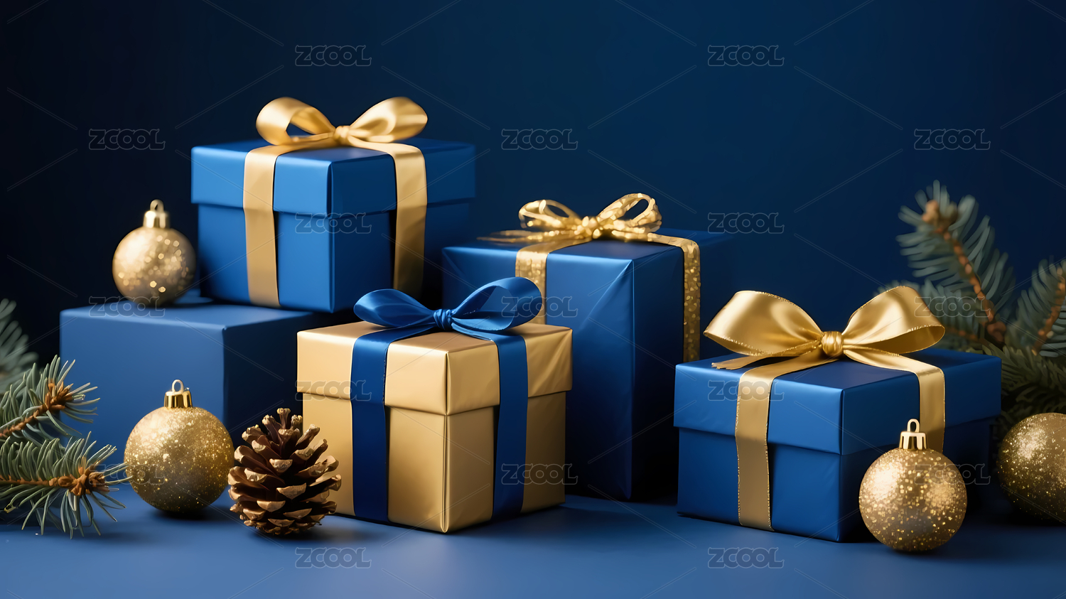 蓝色,背景,深蓝,金色,装饰,蝴蝶结,节日,丝带,礼盒,球体