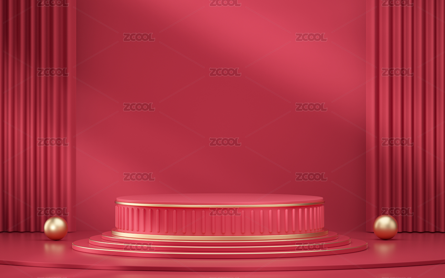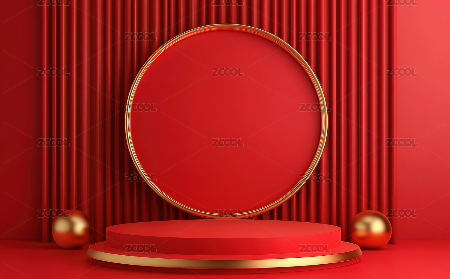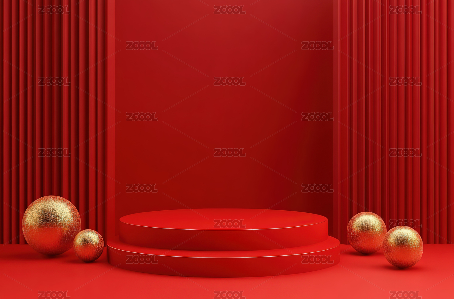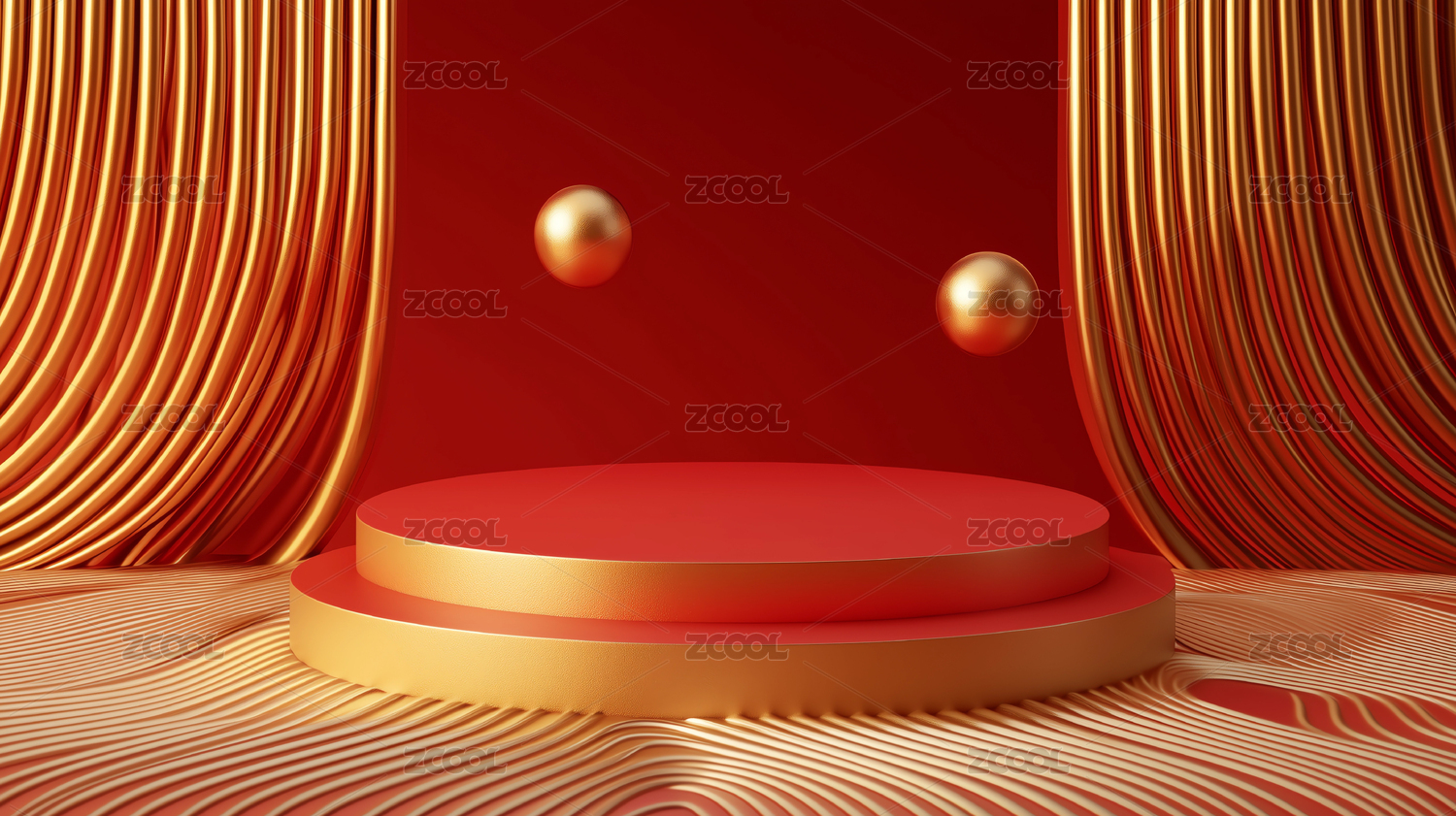 背景,金色,红色,装饰,庄重,圆形,讲台,幕布,小球,舞台