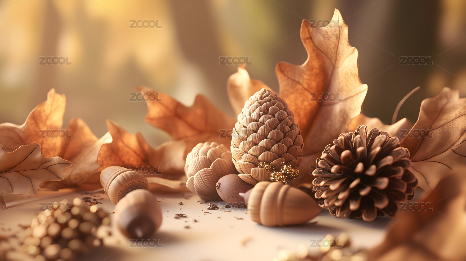 橡果与松果特写