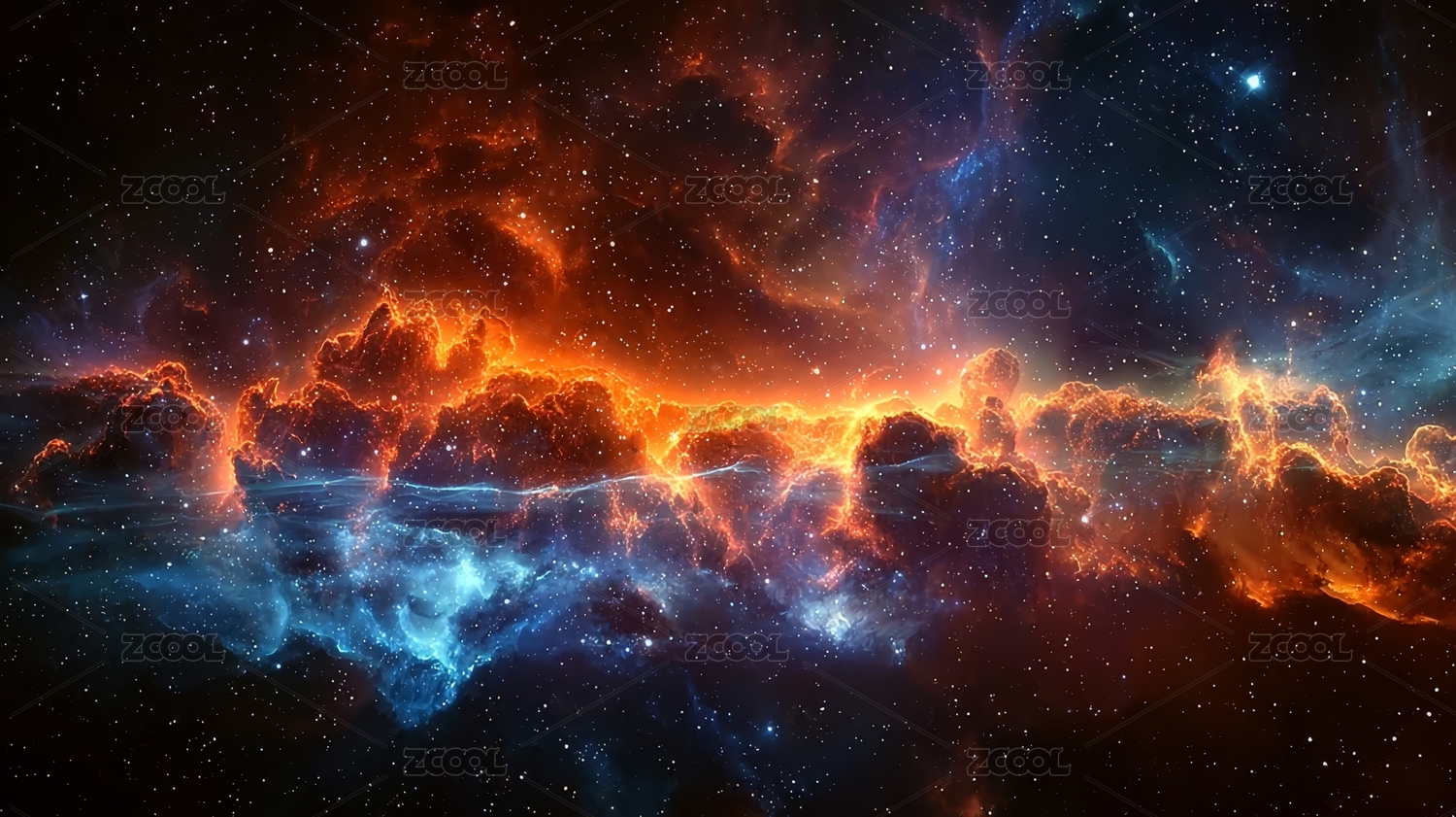 橙蓝星云点缀星空壮丽画面