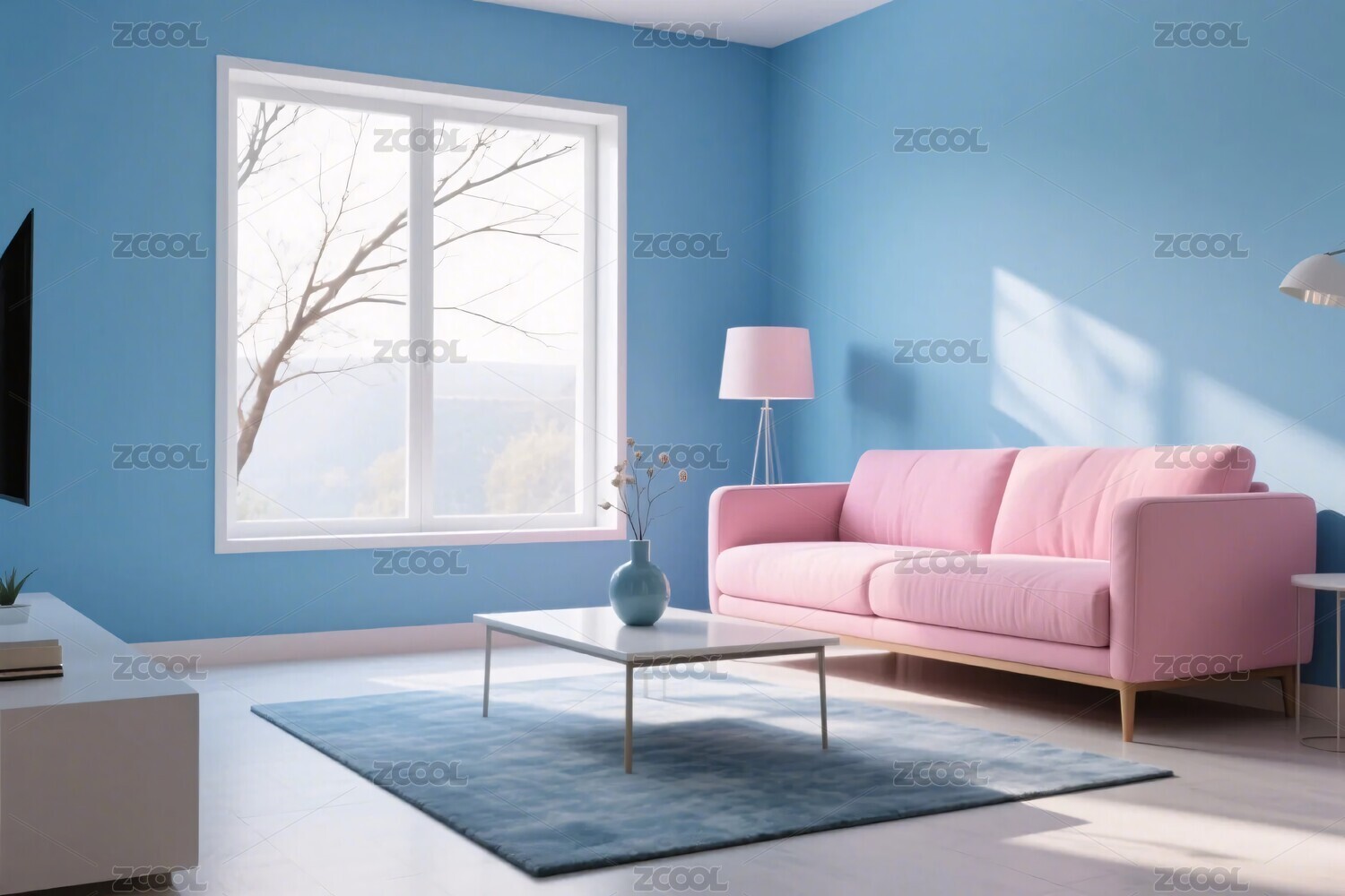 客厅,沙发,植物,窗户,台灯,桌子,地板,简约,温馨,现代