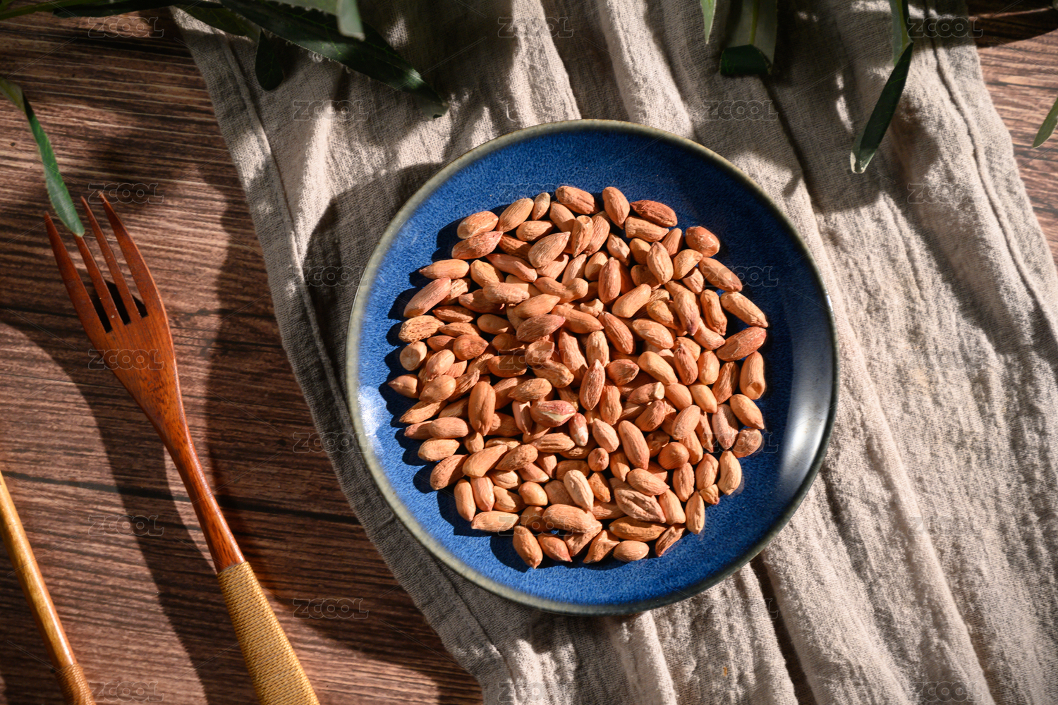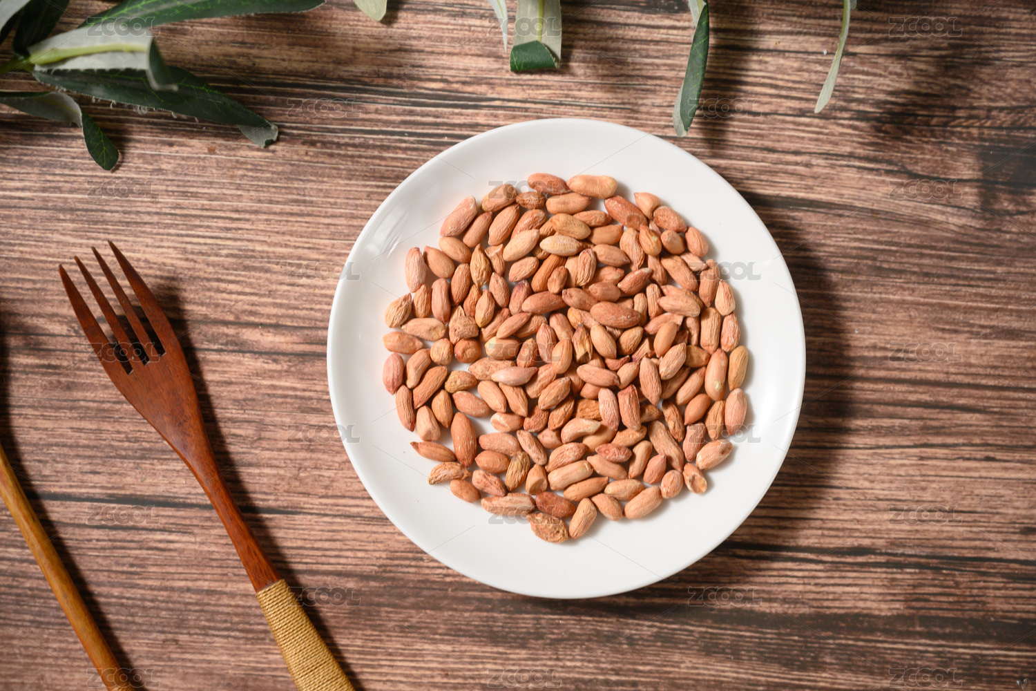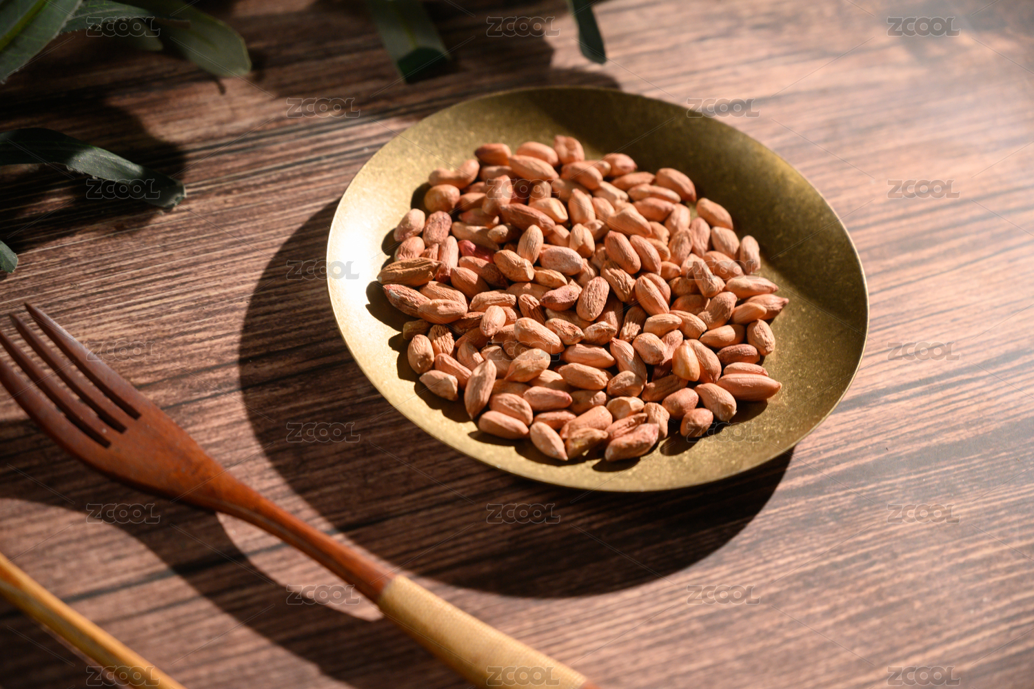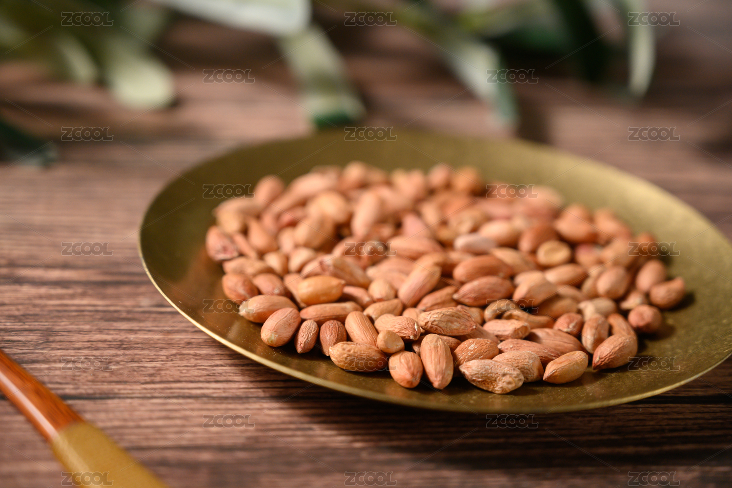 桌面上的盘子里的美味可口的皱皮花生