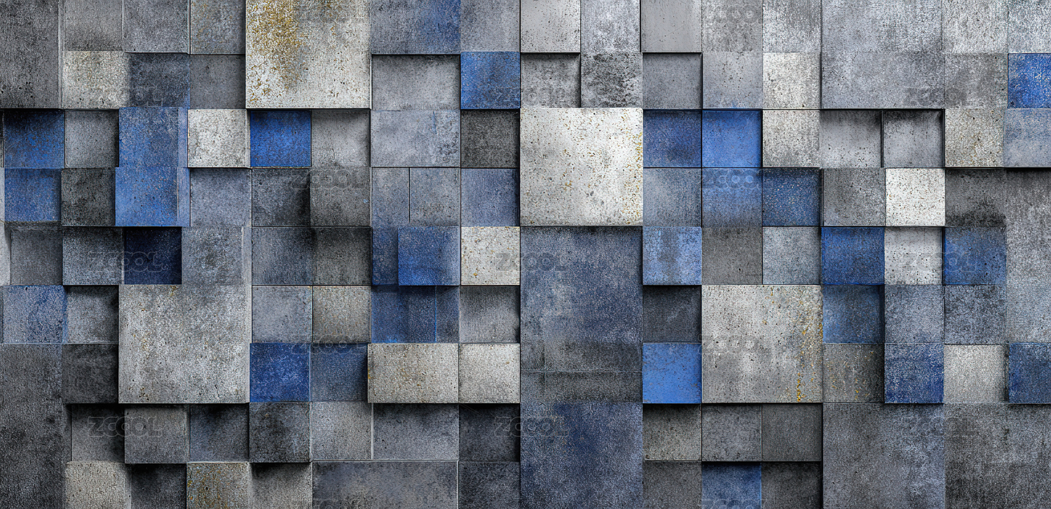 蓝色与白色方块交错叠加的抽象立体几何背景