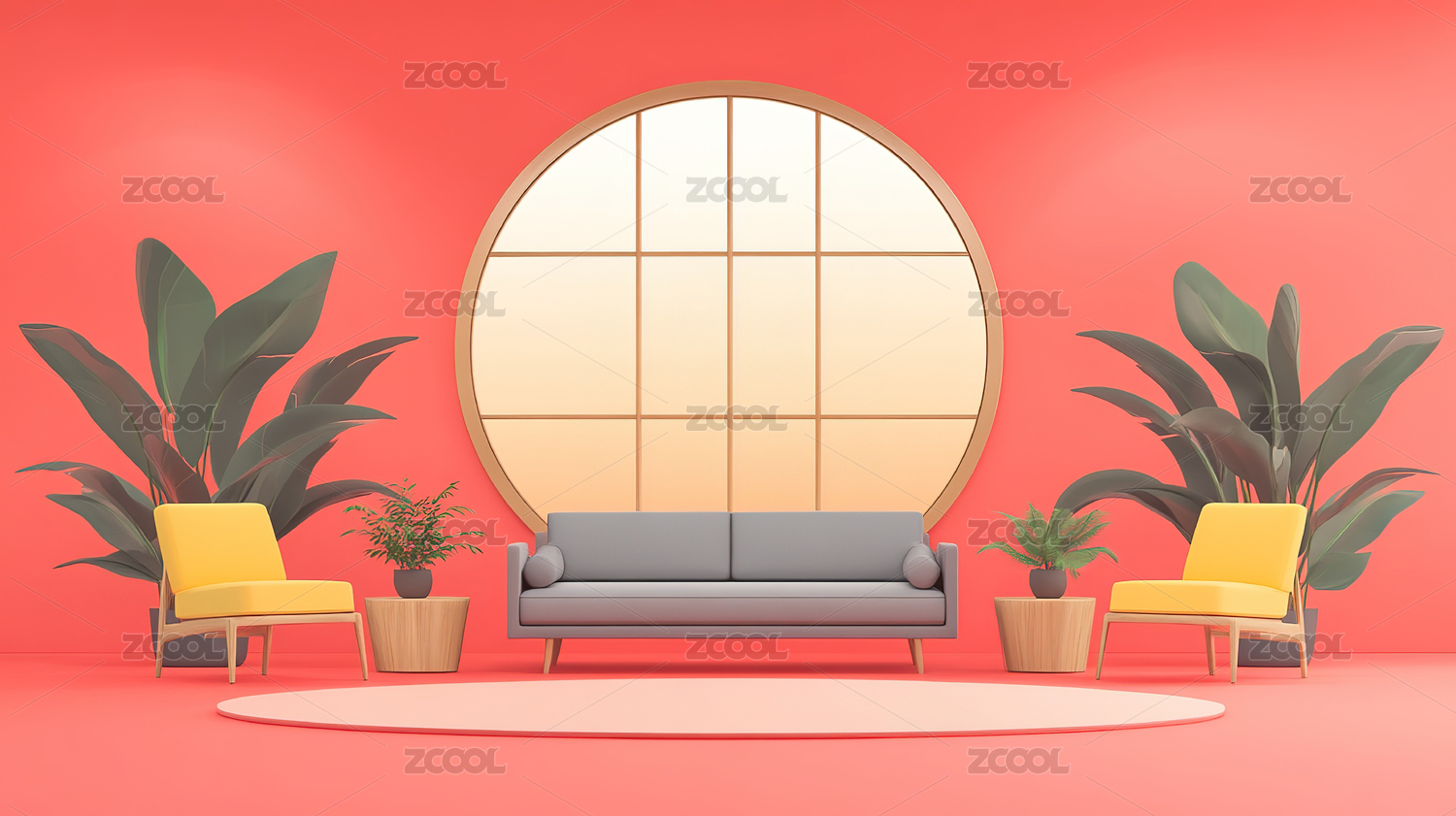 沙发、墙壁、绿植,极简主义多彩的室内设计
