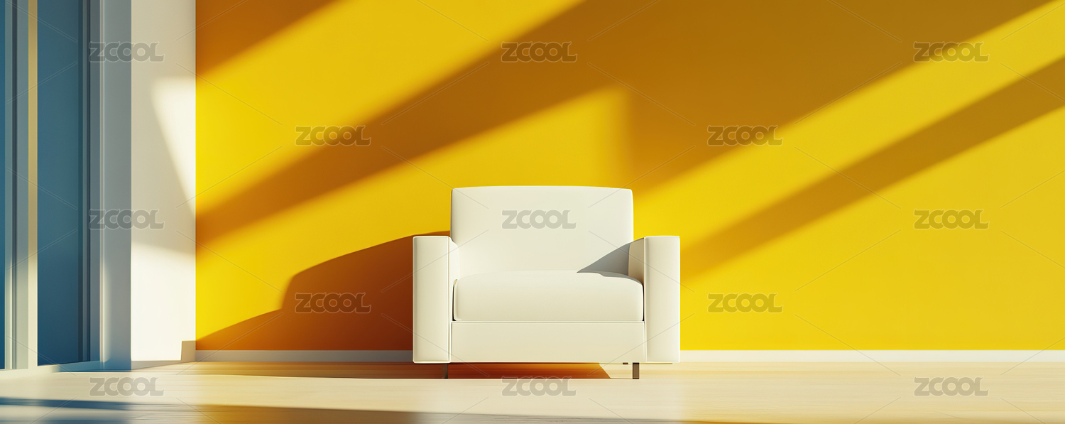 简约黄色背景光影中的现代办公椅子