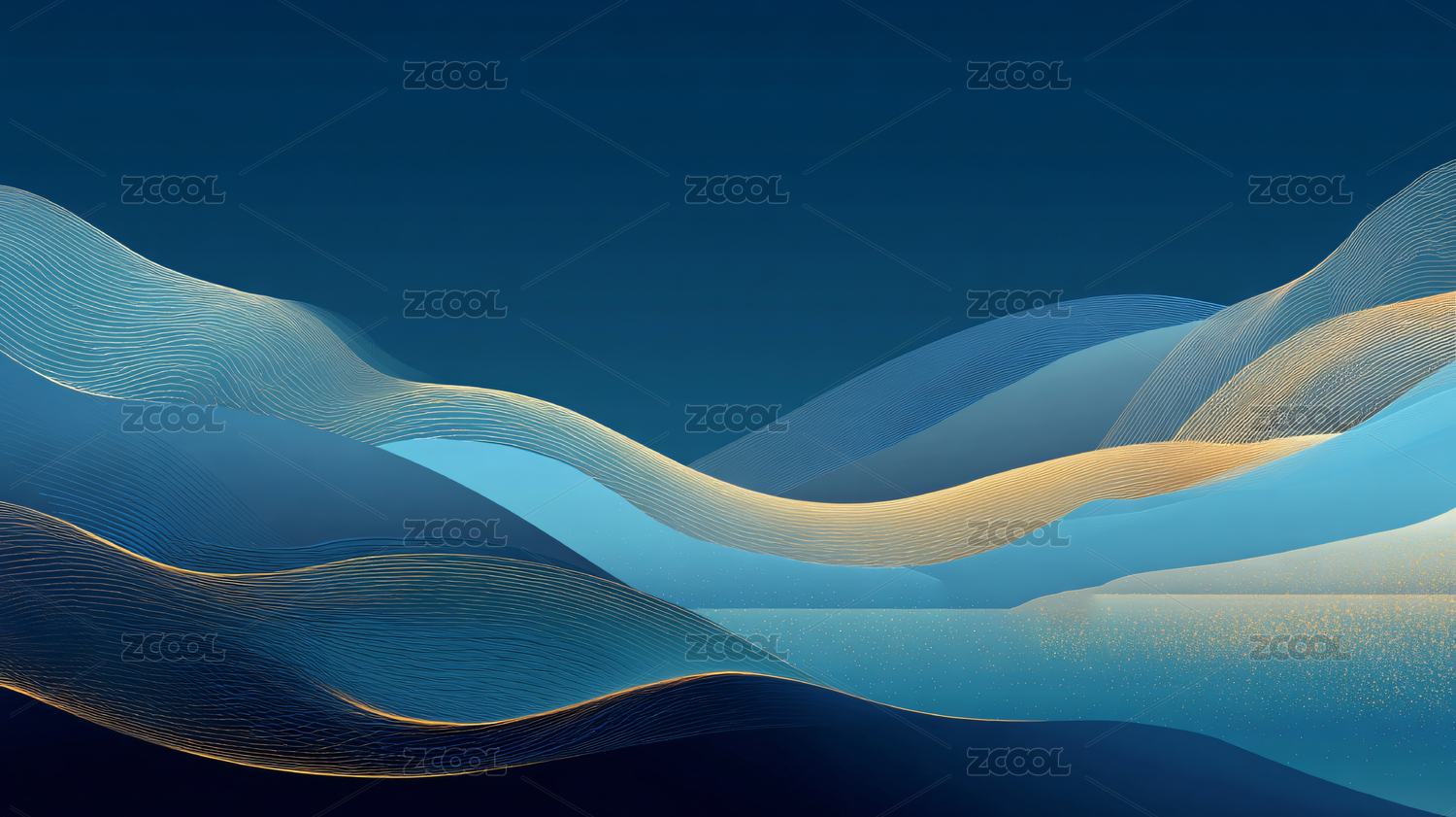 蓝金渐变山水形抽象画面