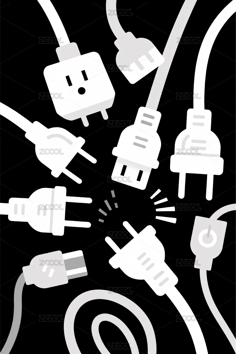 插头,电线,剪影,插画,矢量,电气,接线,设计,图形,模板