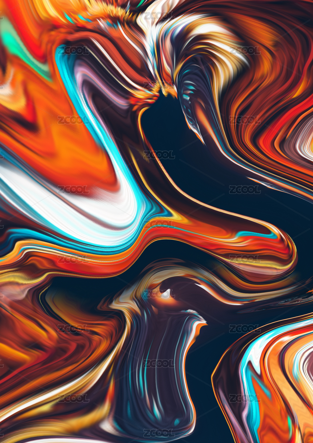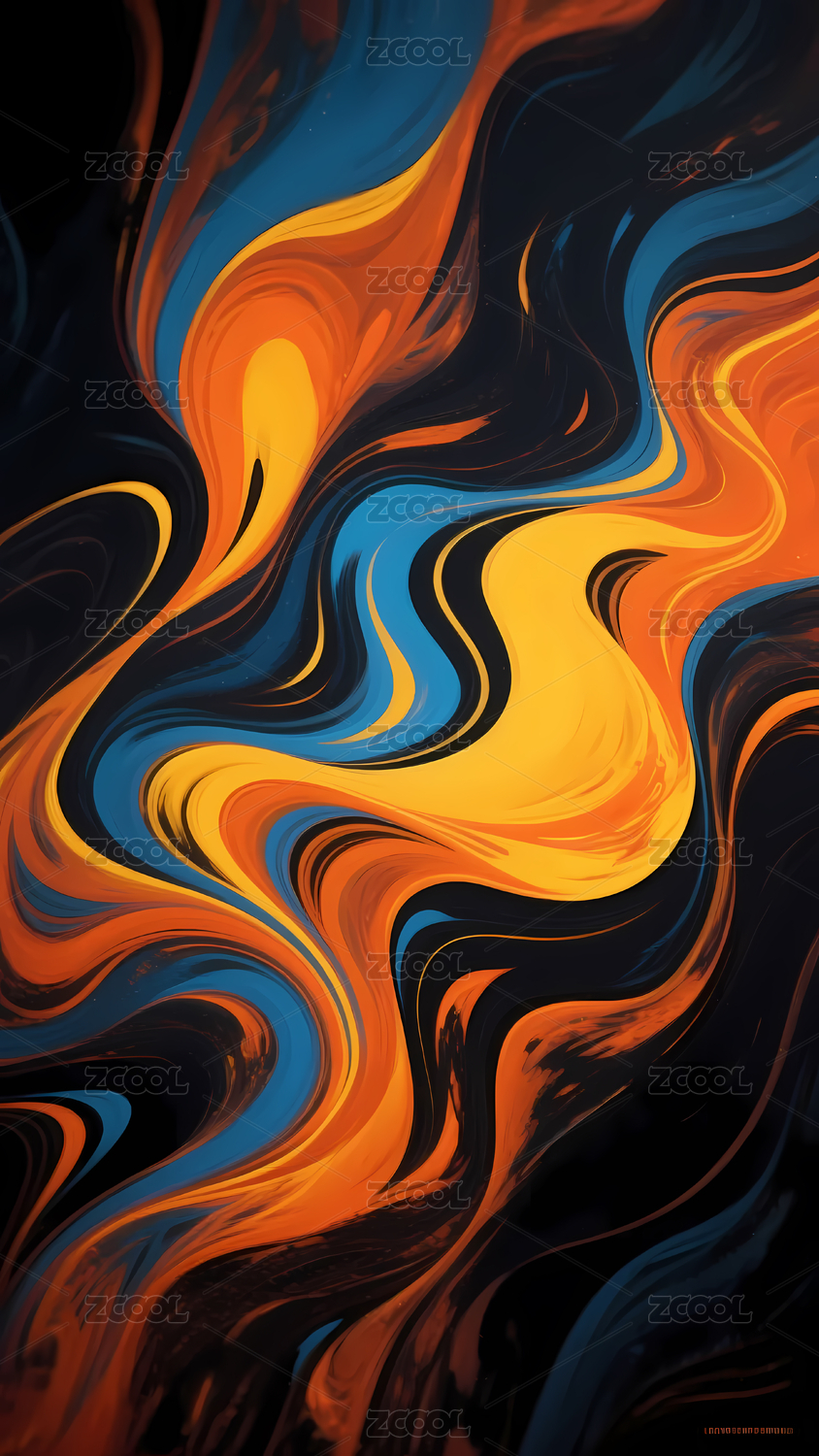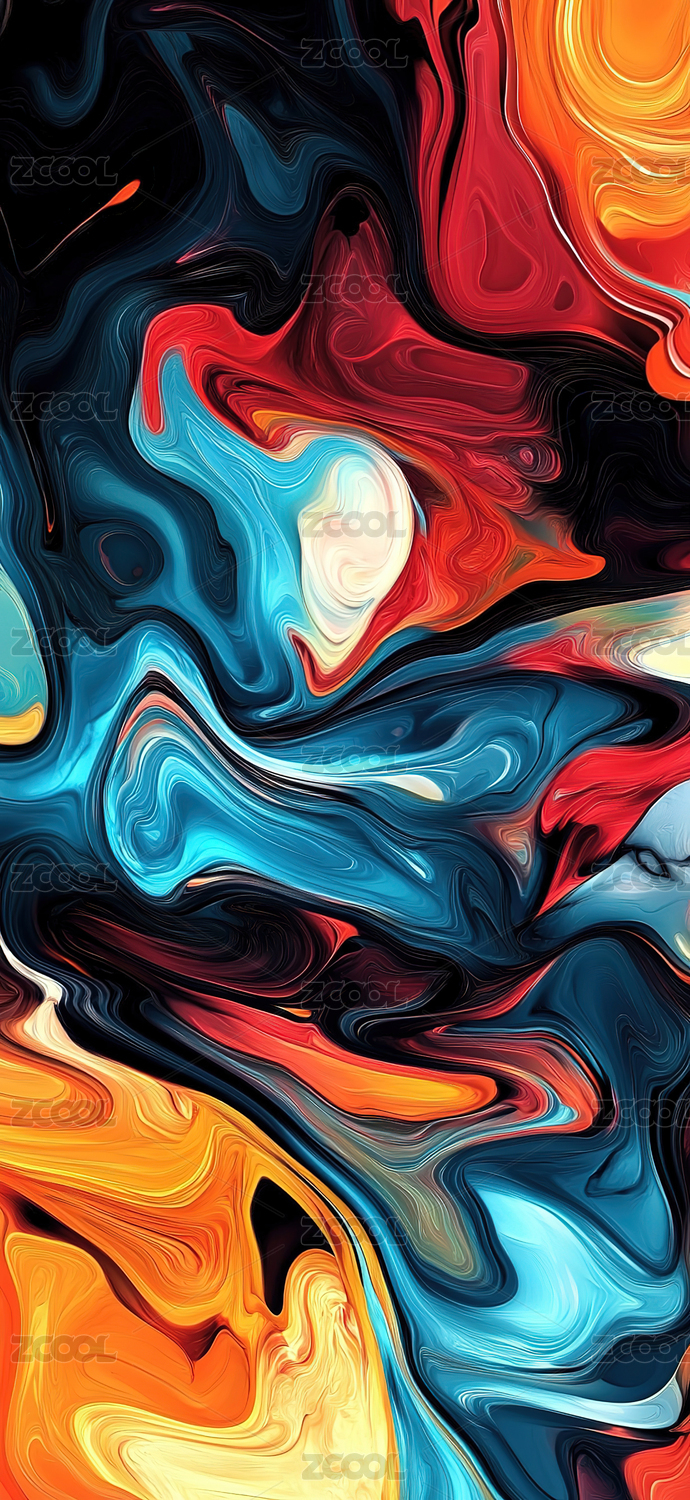 蓝色和橙色液态抽象艺术