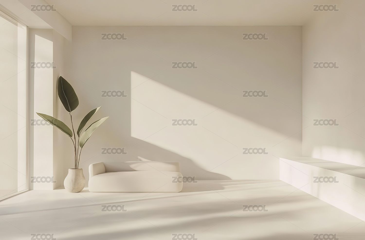 白色,简约,现代,家居,盆栽,绿植,光影,留白,采光,静谧