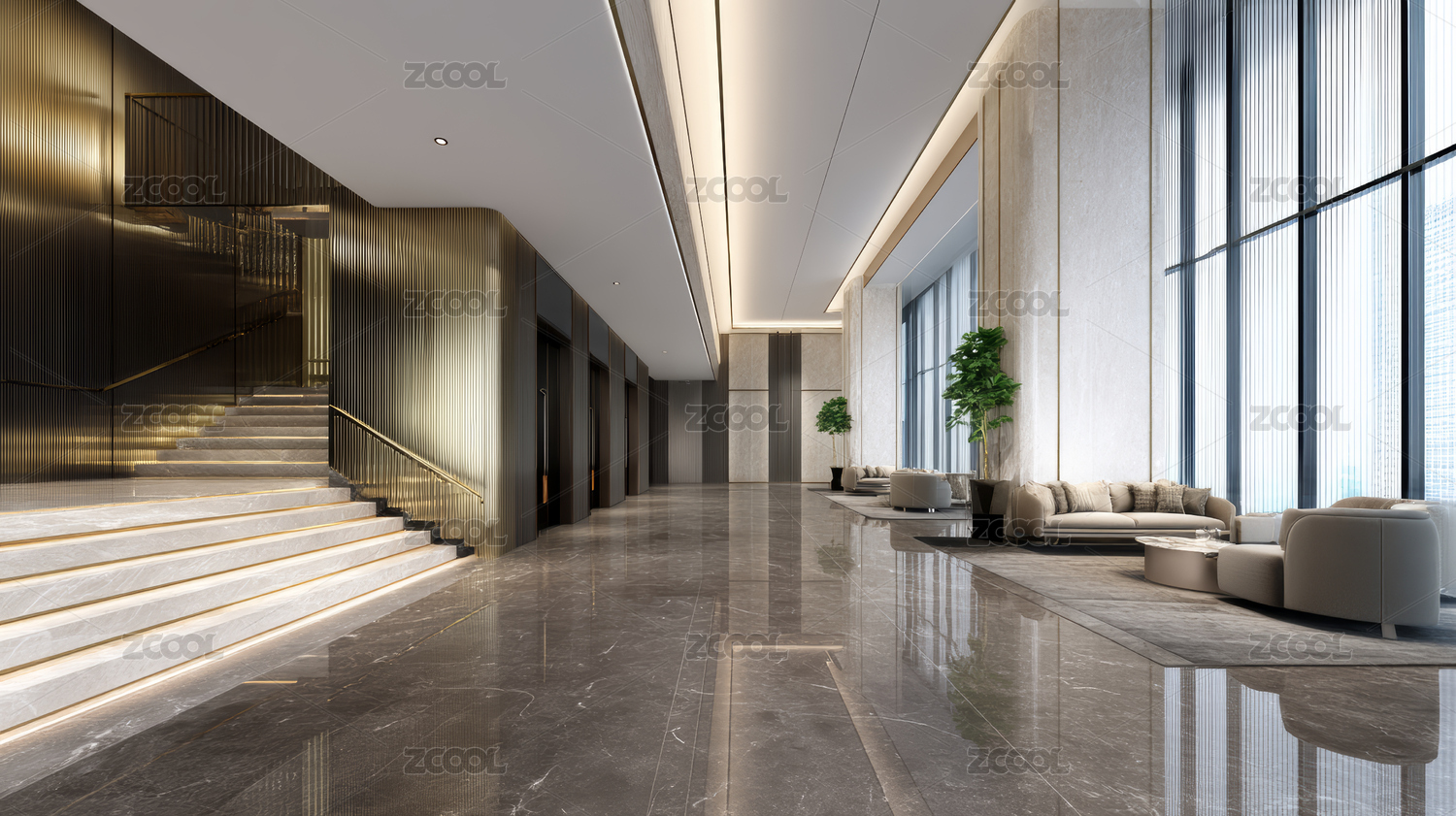酒店大堂,室内设计,现代风格,奢华,大理石地面,落地窗,采光,休息区,沙发,绿植