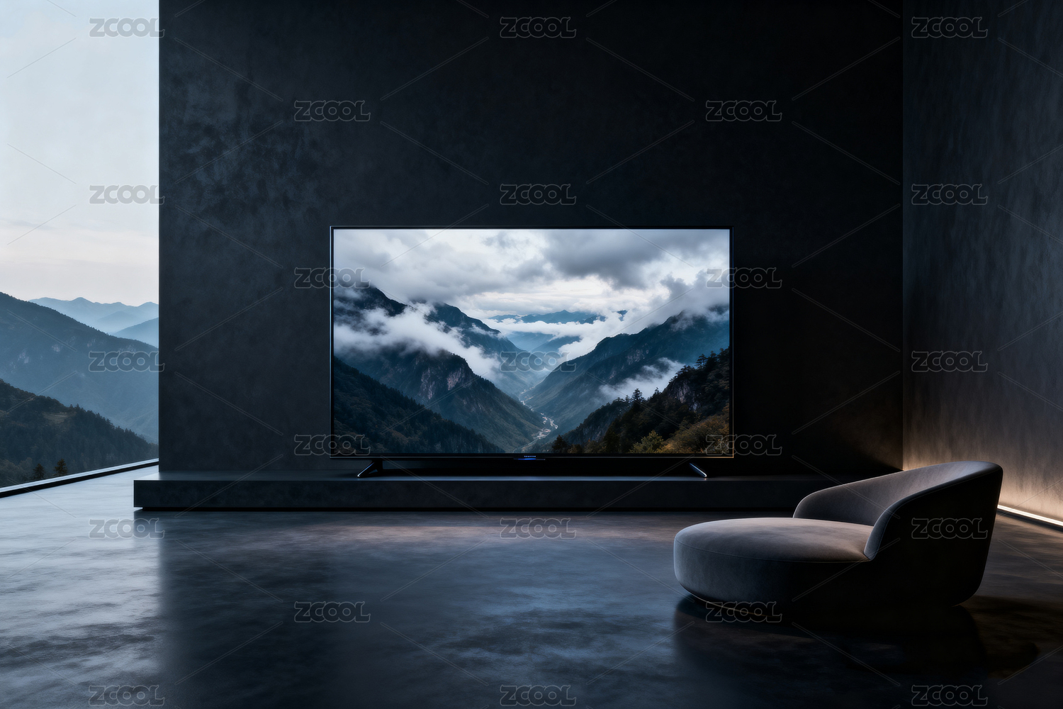 电视,湖泊,雪山,倒影,科技,家居,显示器,现代化,高山,云朵