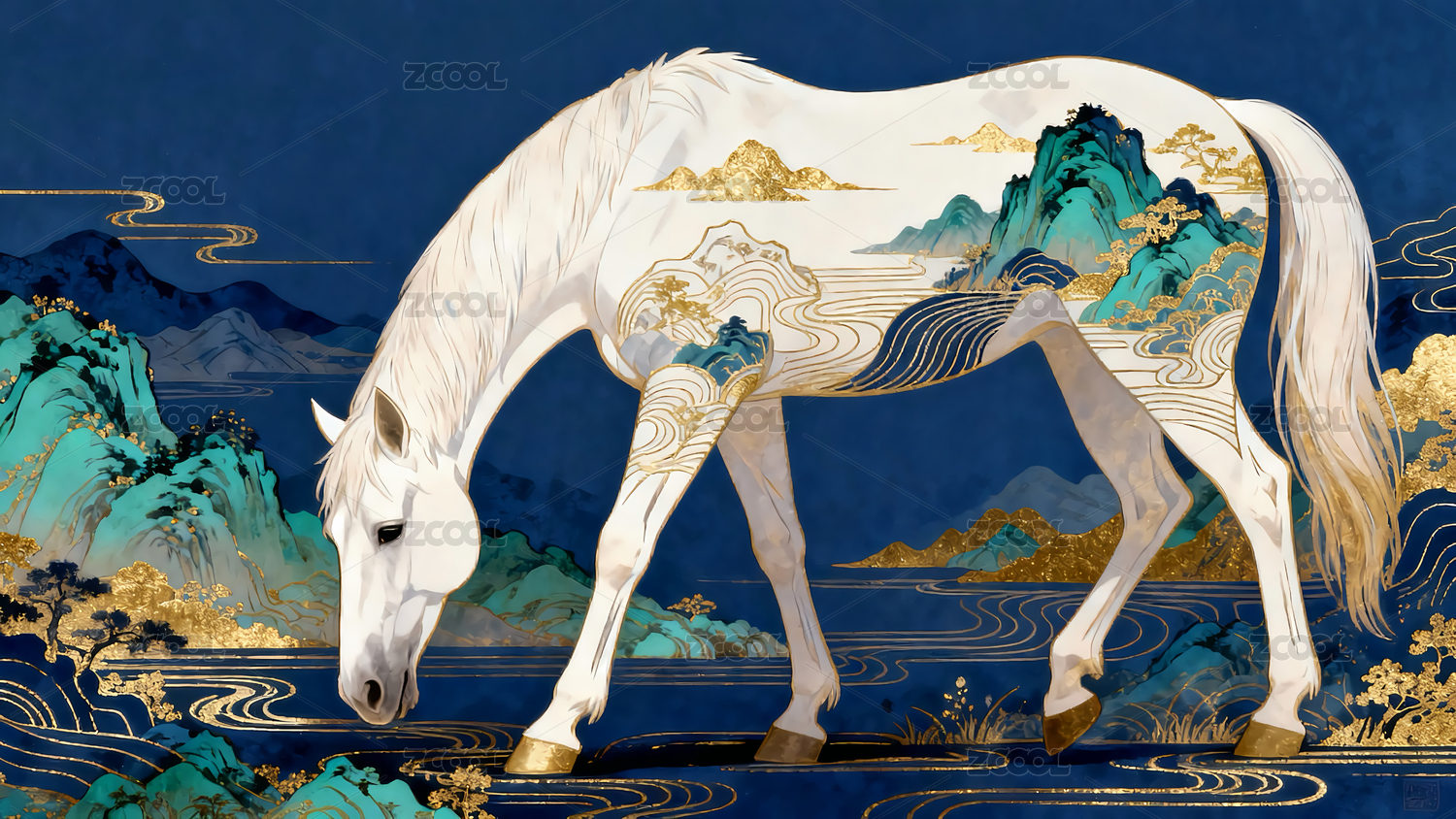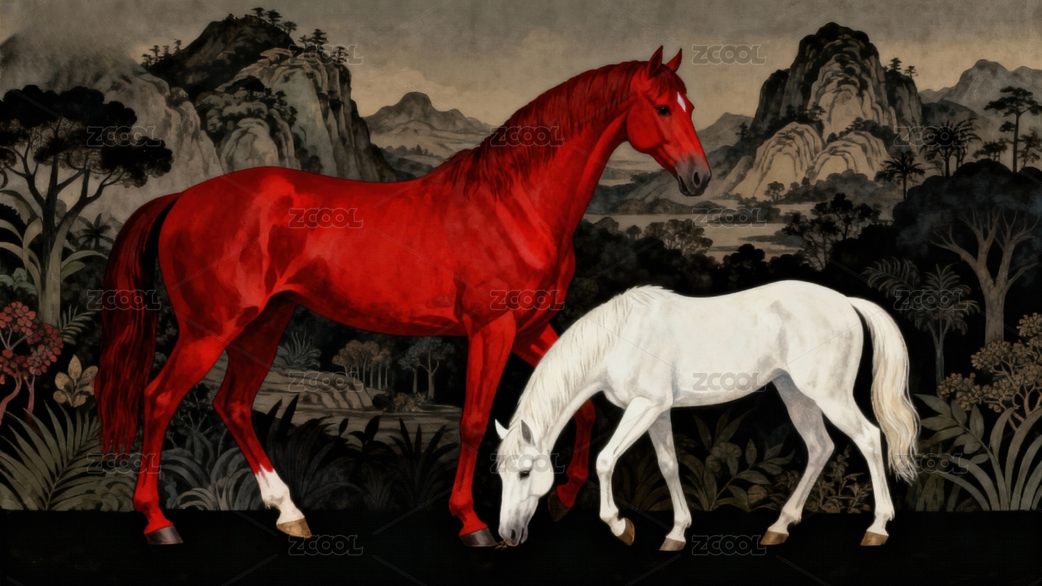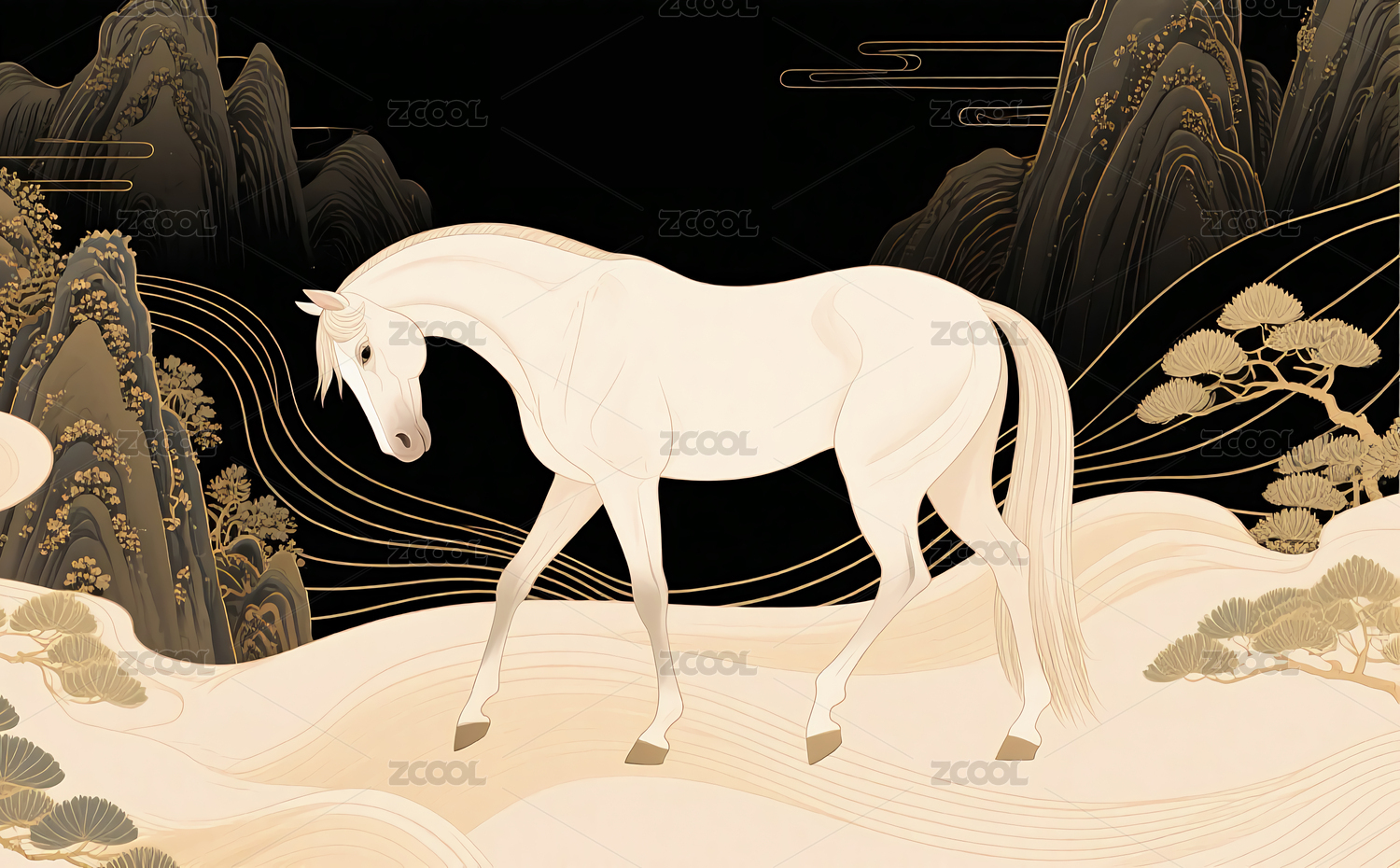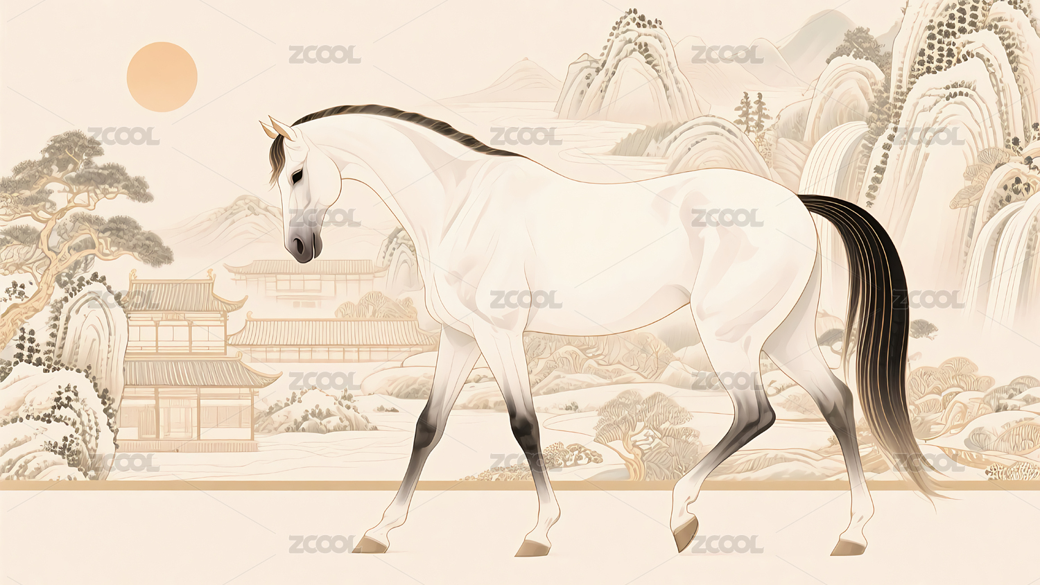 水墨画,国潮,风景,高山,树木,植物,云雾,古风,写意,天空