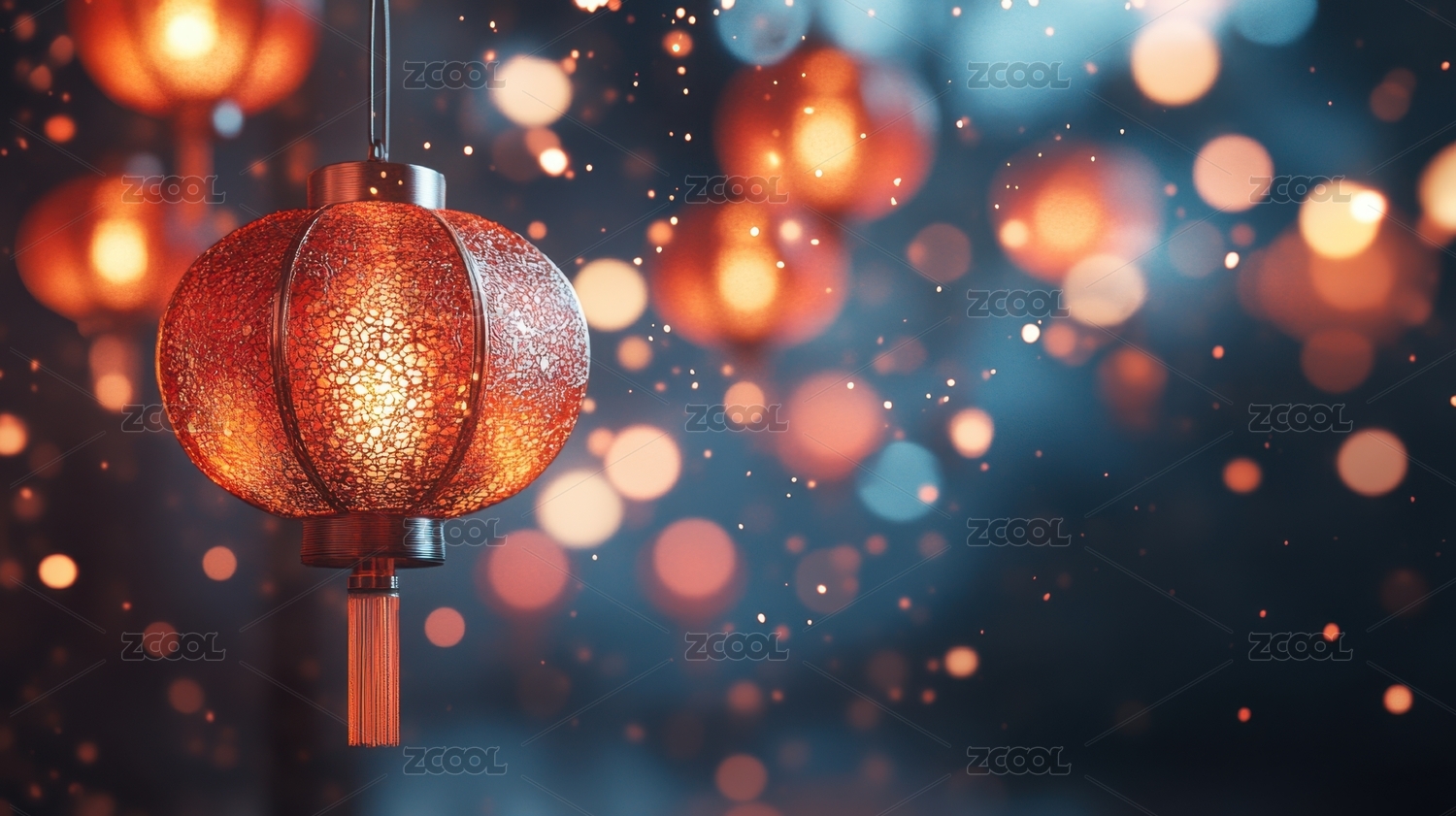 古典节日夜晚背景虚化红色灯笼3D