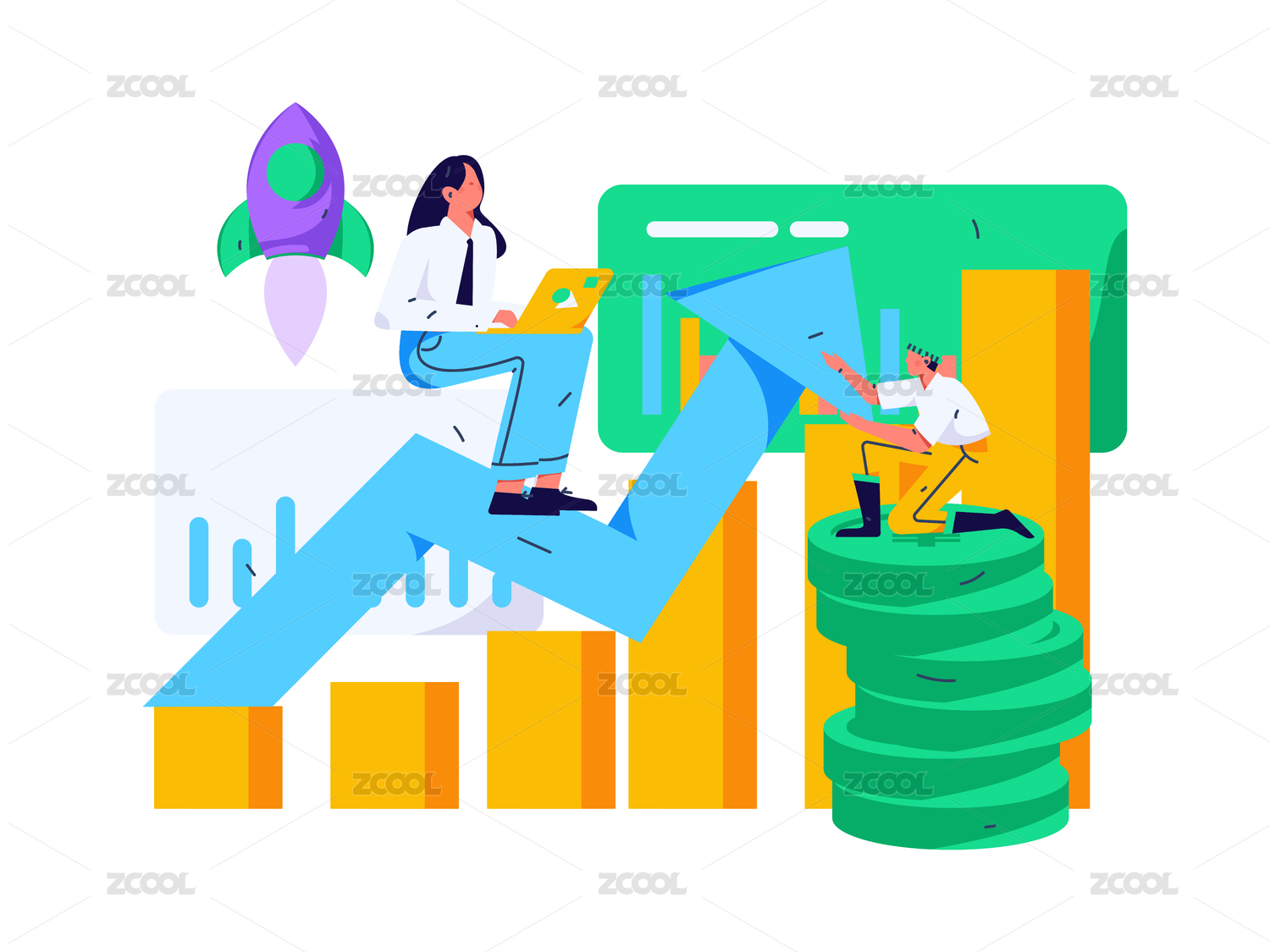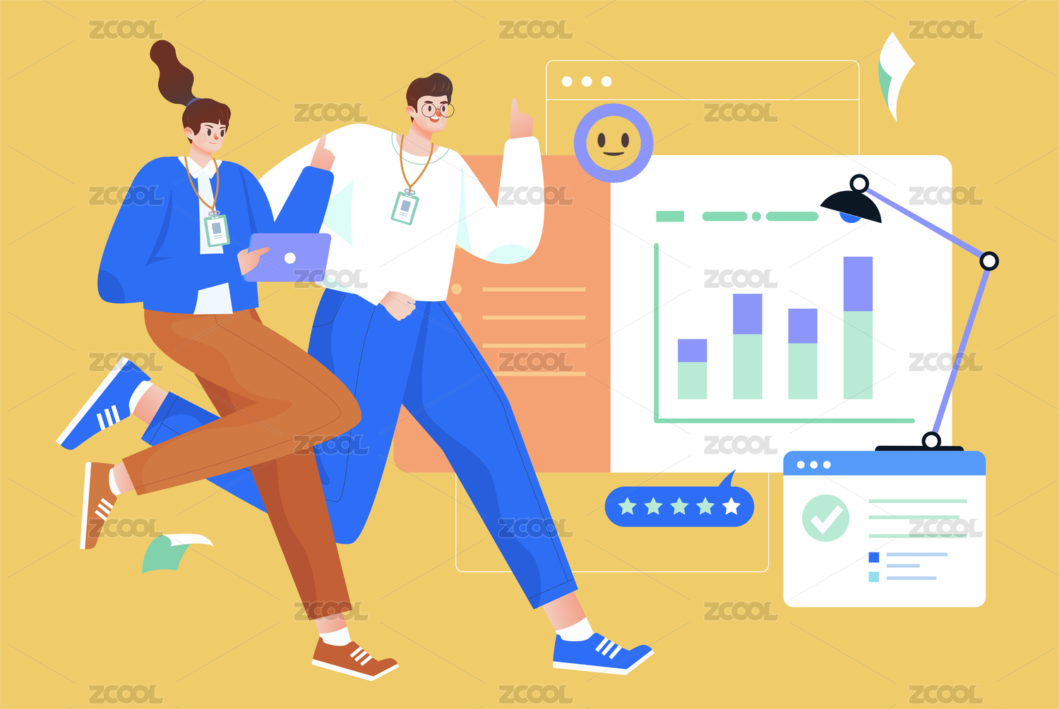卡通蓝色手绘职场求职白领晋升闪屏海报插画