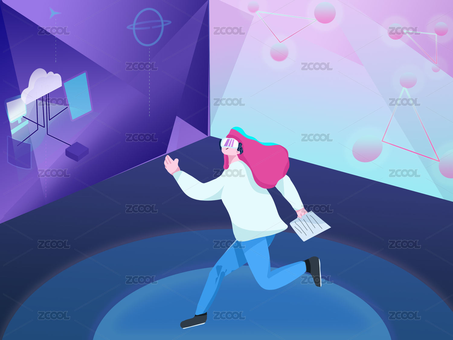 元宇宙插画人工智能高科技未来虚拟玩家模版