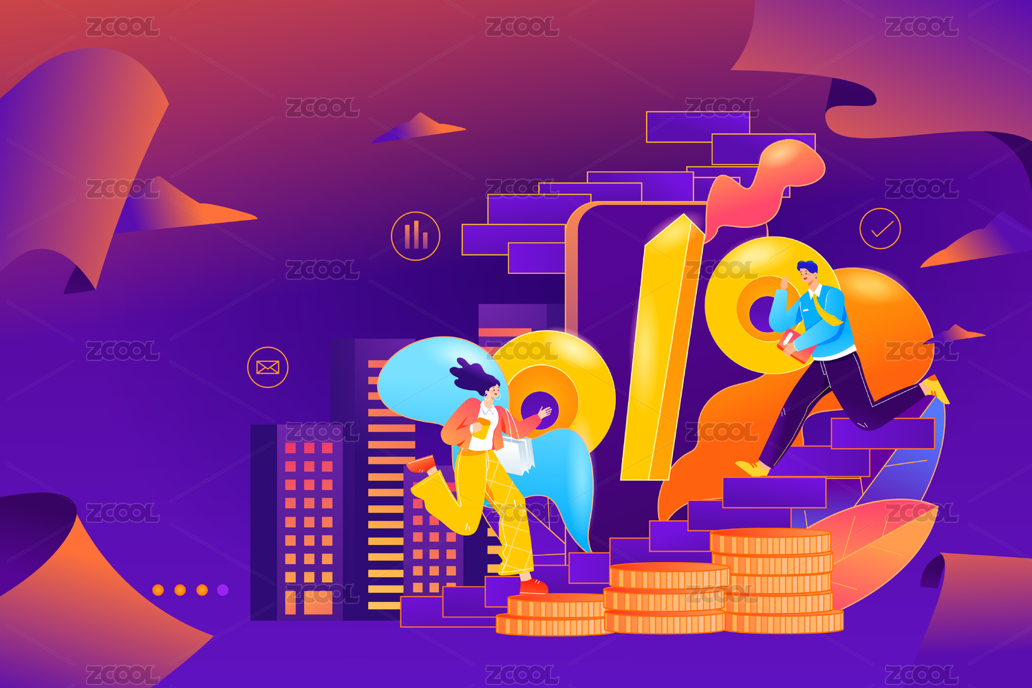 男女大学生奔跑简历建筑高楼纸张矢量插画