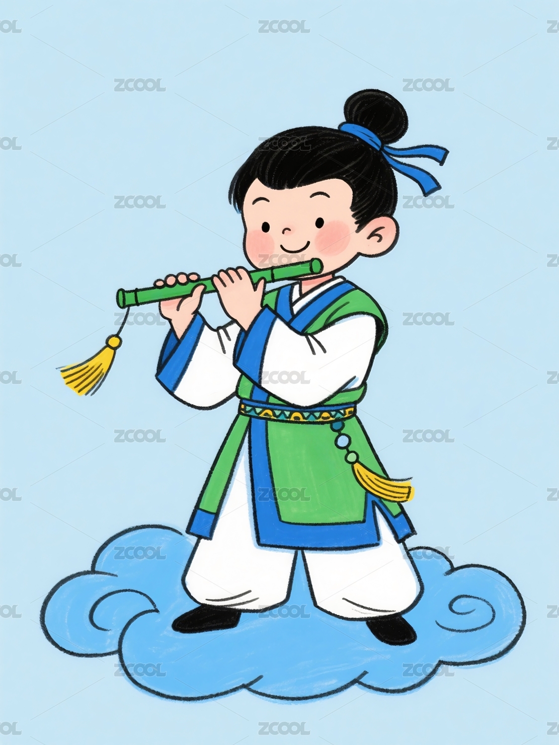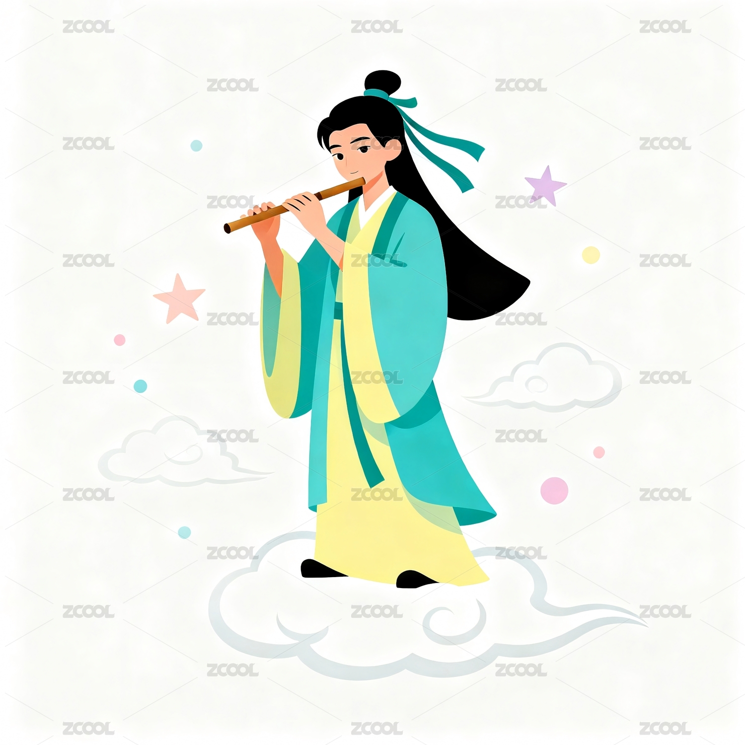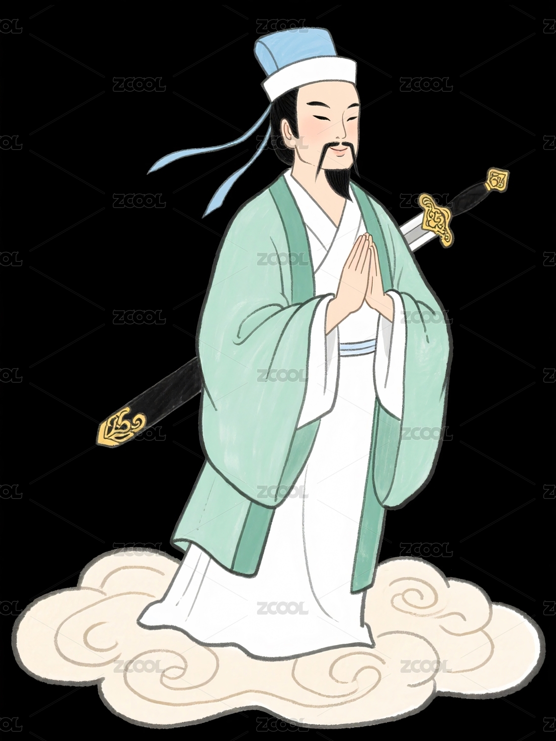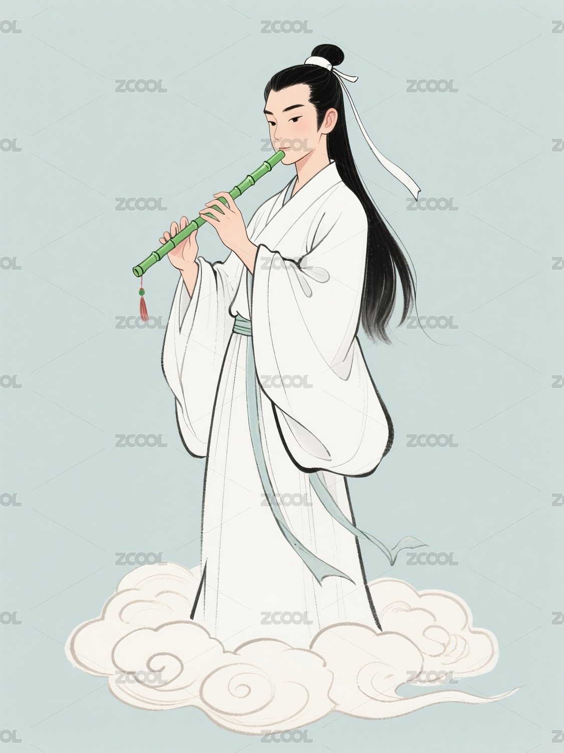 绿色,清新,艺术,人物,东方,水墨,仙气,祥云,云雾,传统