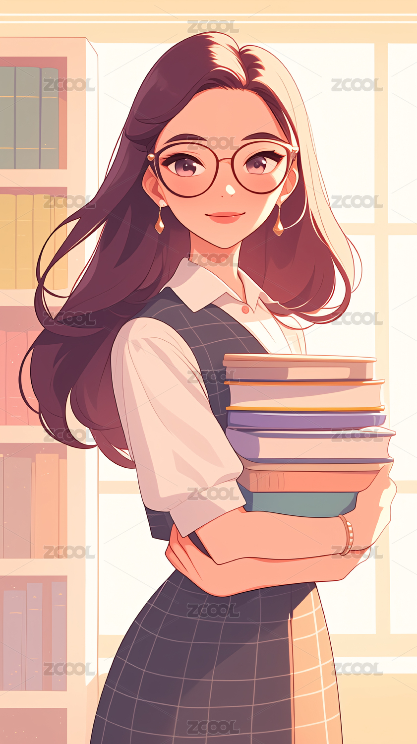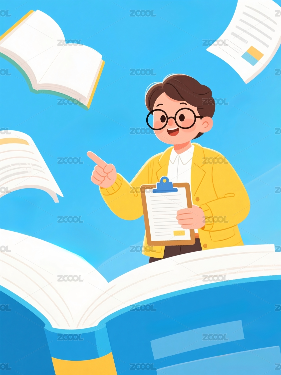 教师插画看书