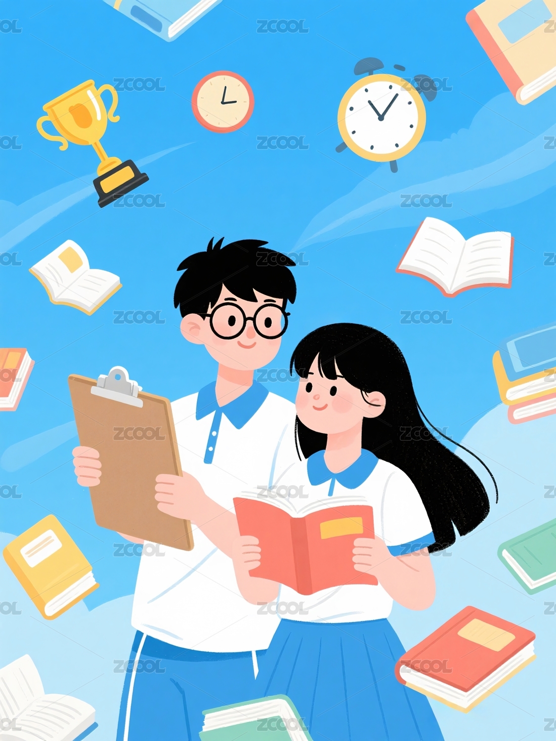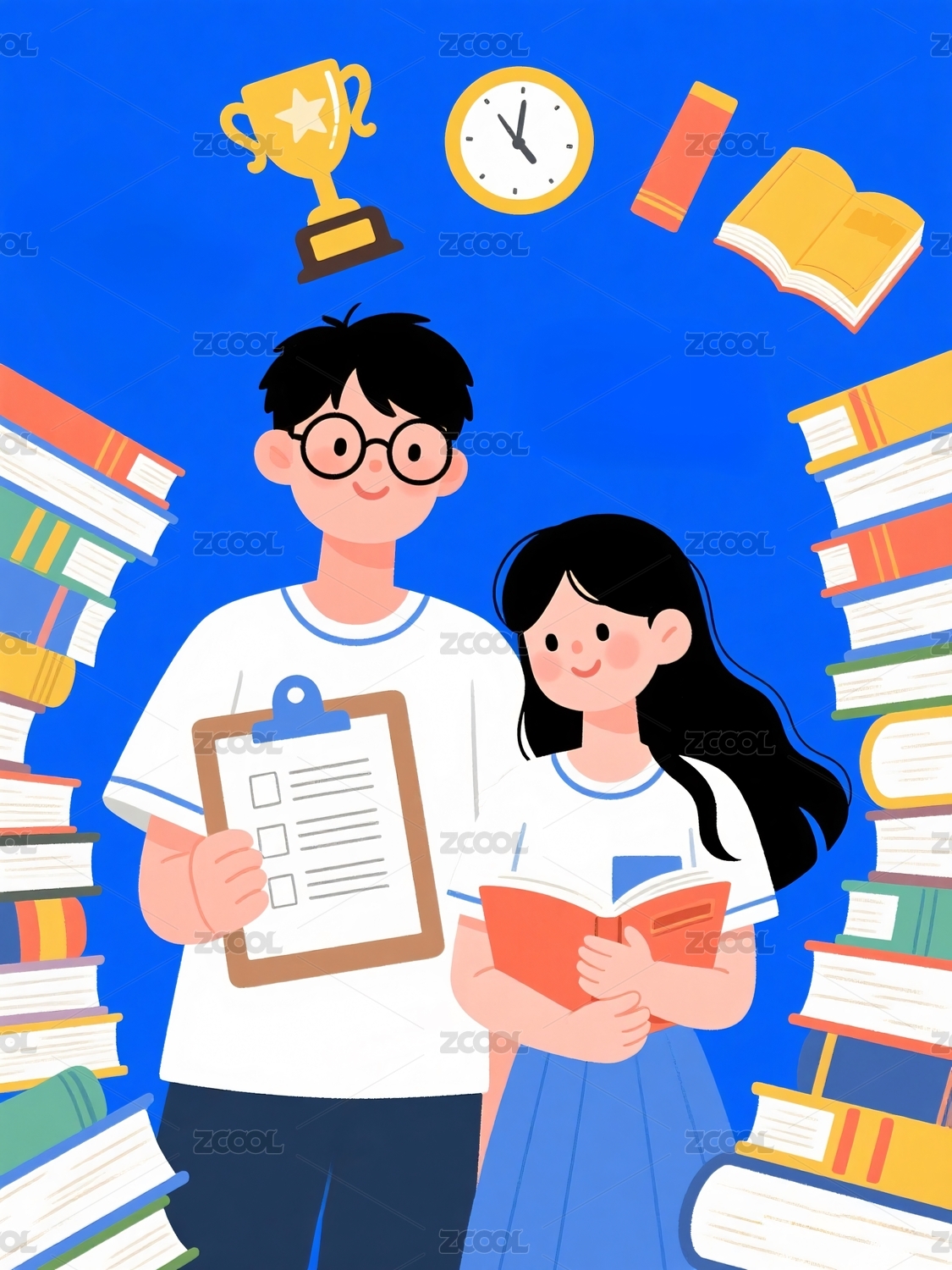 老师,学生,学习,书本,奖杯,眼镜,准备,备考,考试,教育