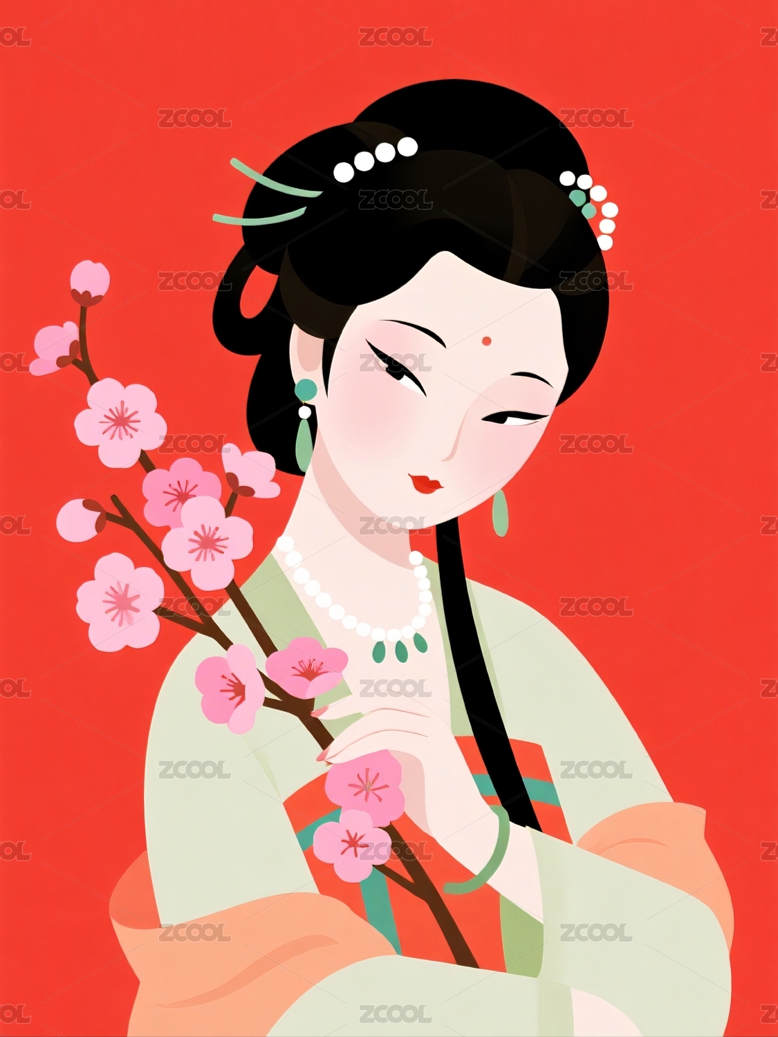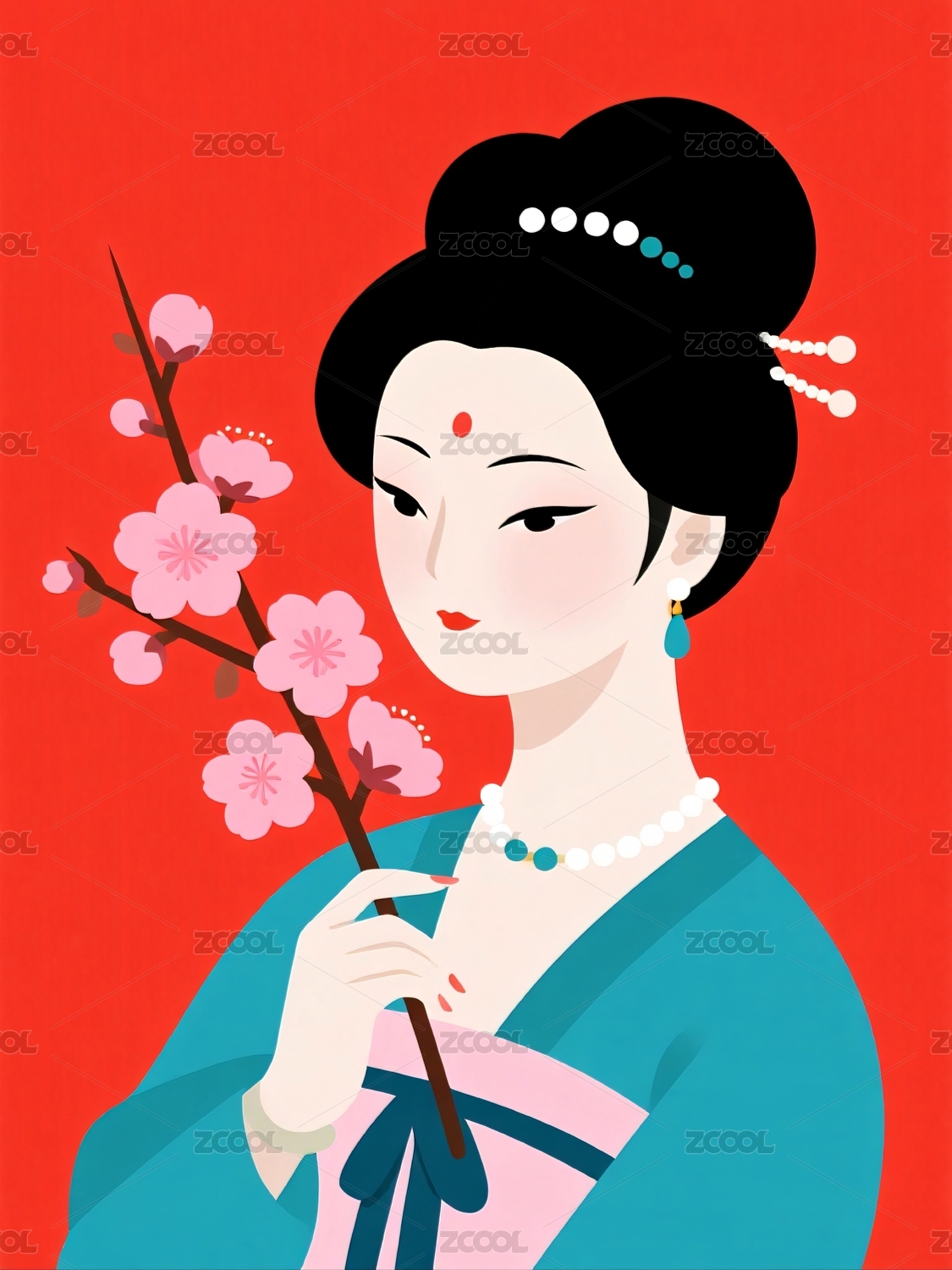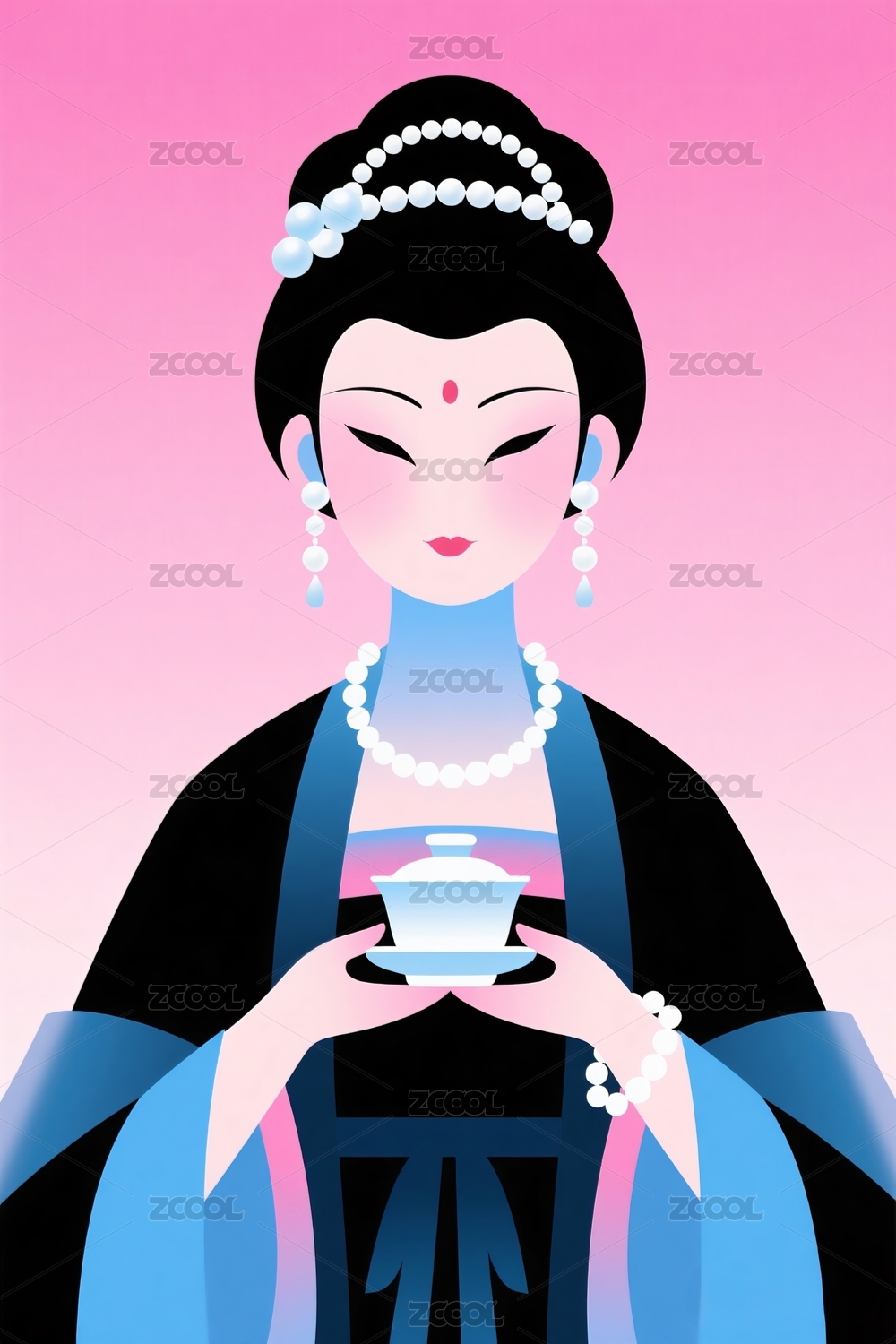 女子,珍珠,茶杯,优雅,装饰,服饰,姿态,古典,东方,背景