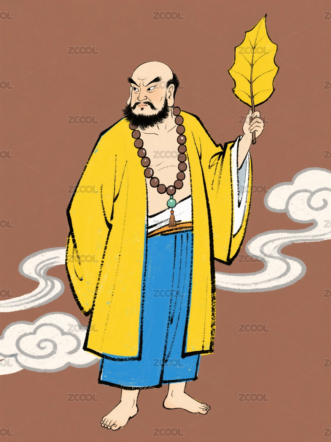 古代僧人手持扇子图画