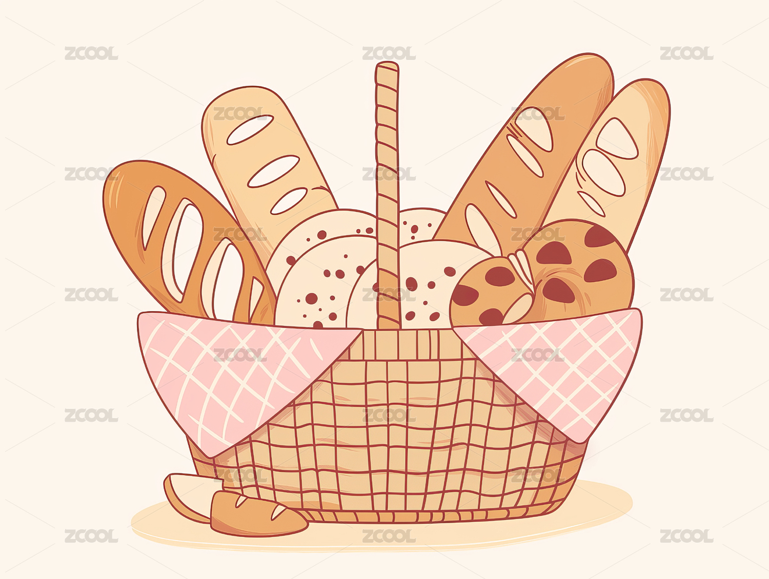 烘焙食品,早餐必备,健康食品,欧式面包,圆形面包,长条面包,面包特写,餐桌美食,新鲜面包,美味食物