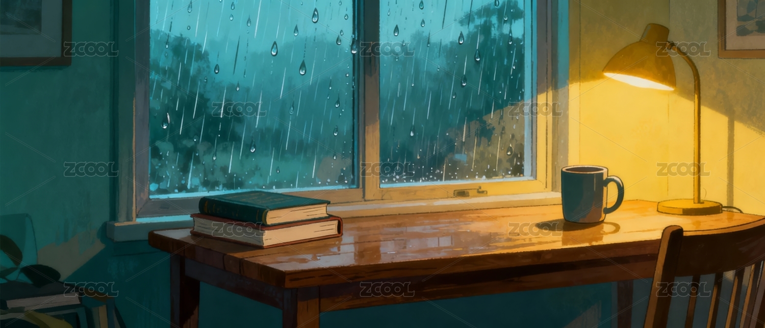 雨夜书桌阅读场景