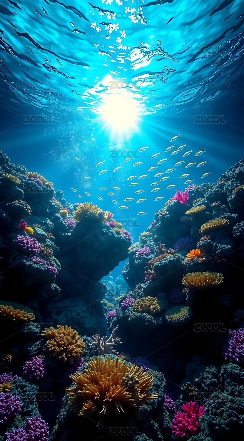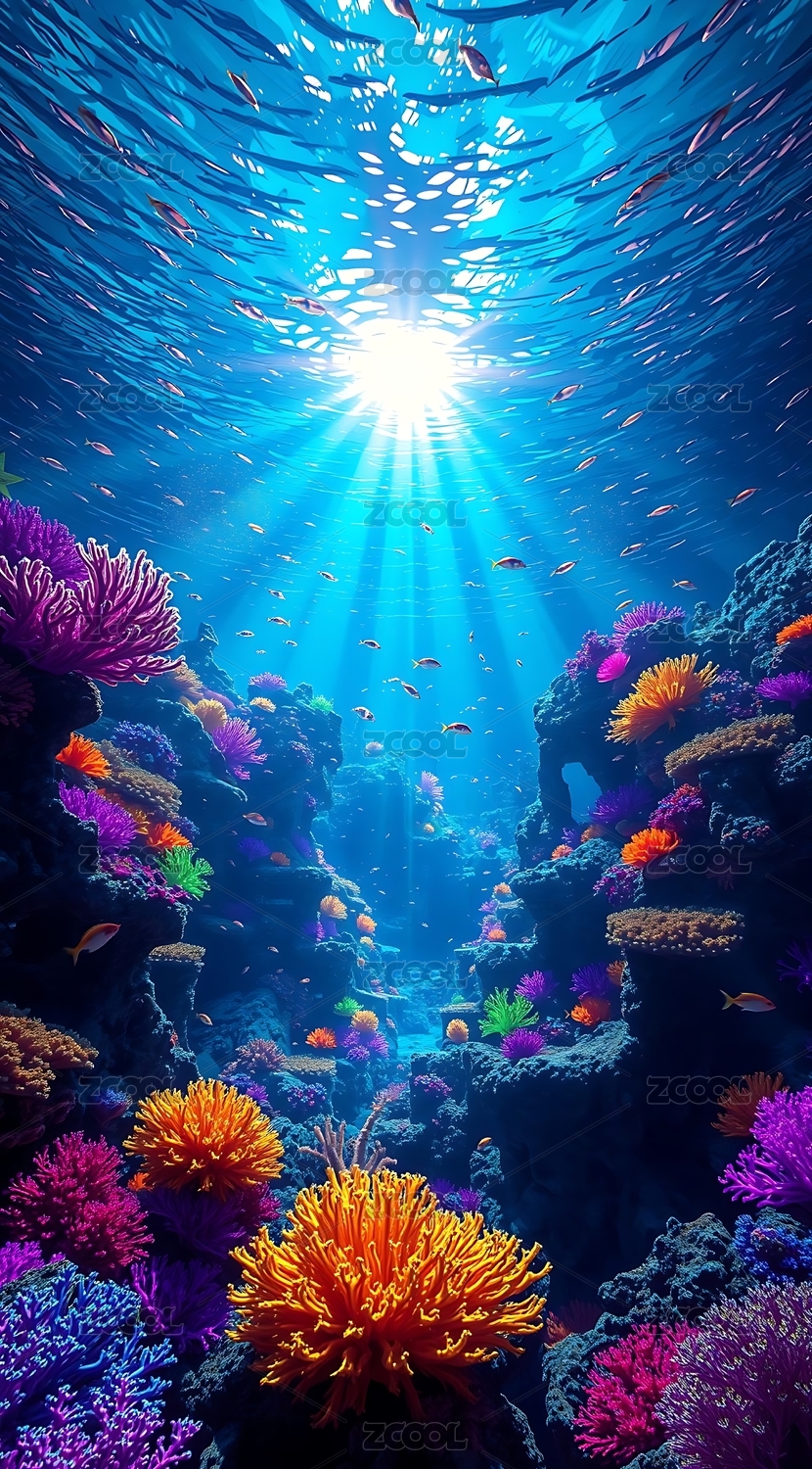 珊瑚绚丽感海底生态场景