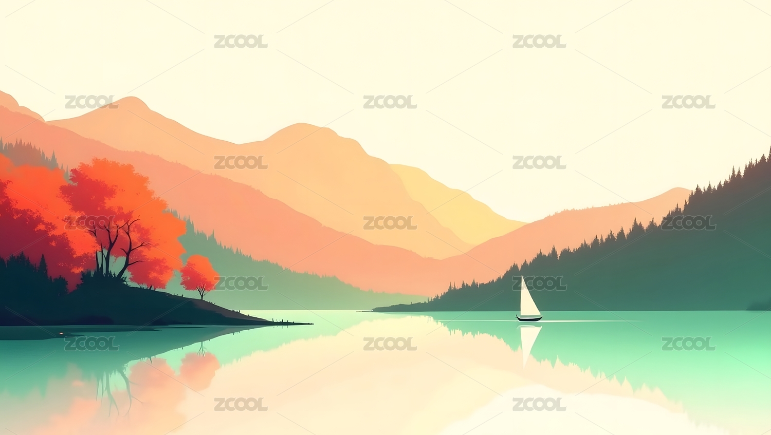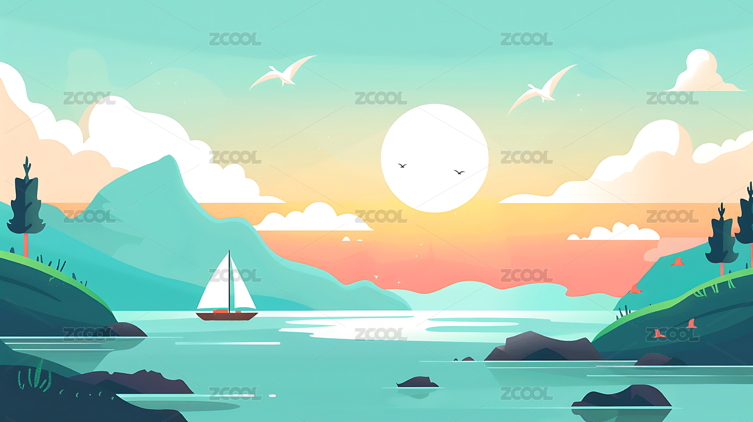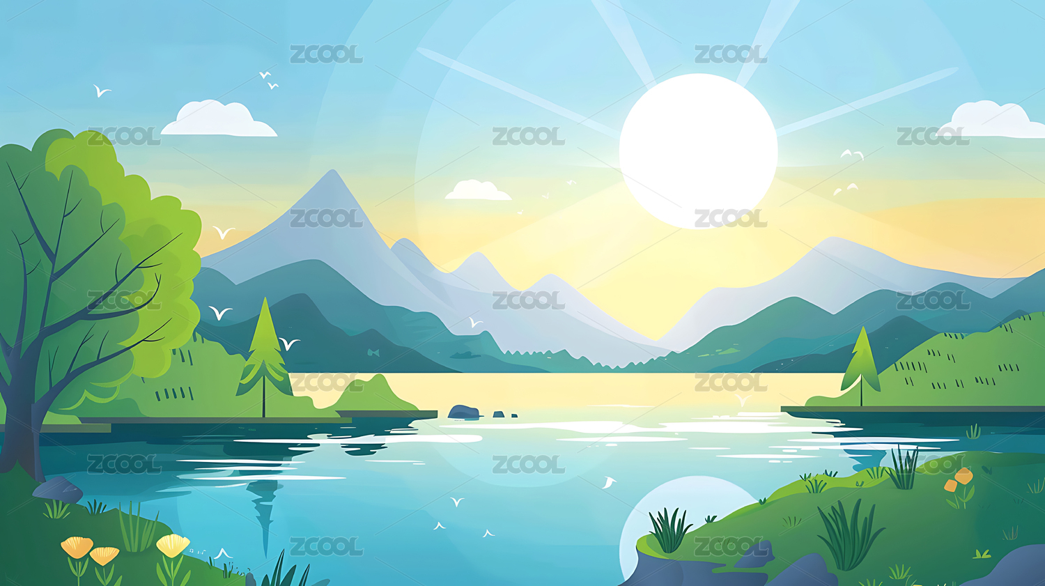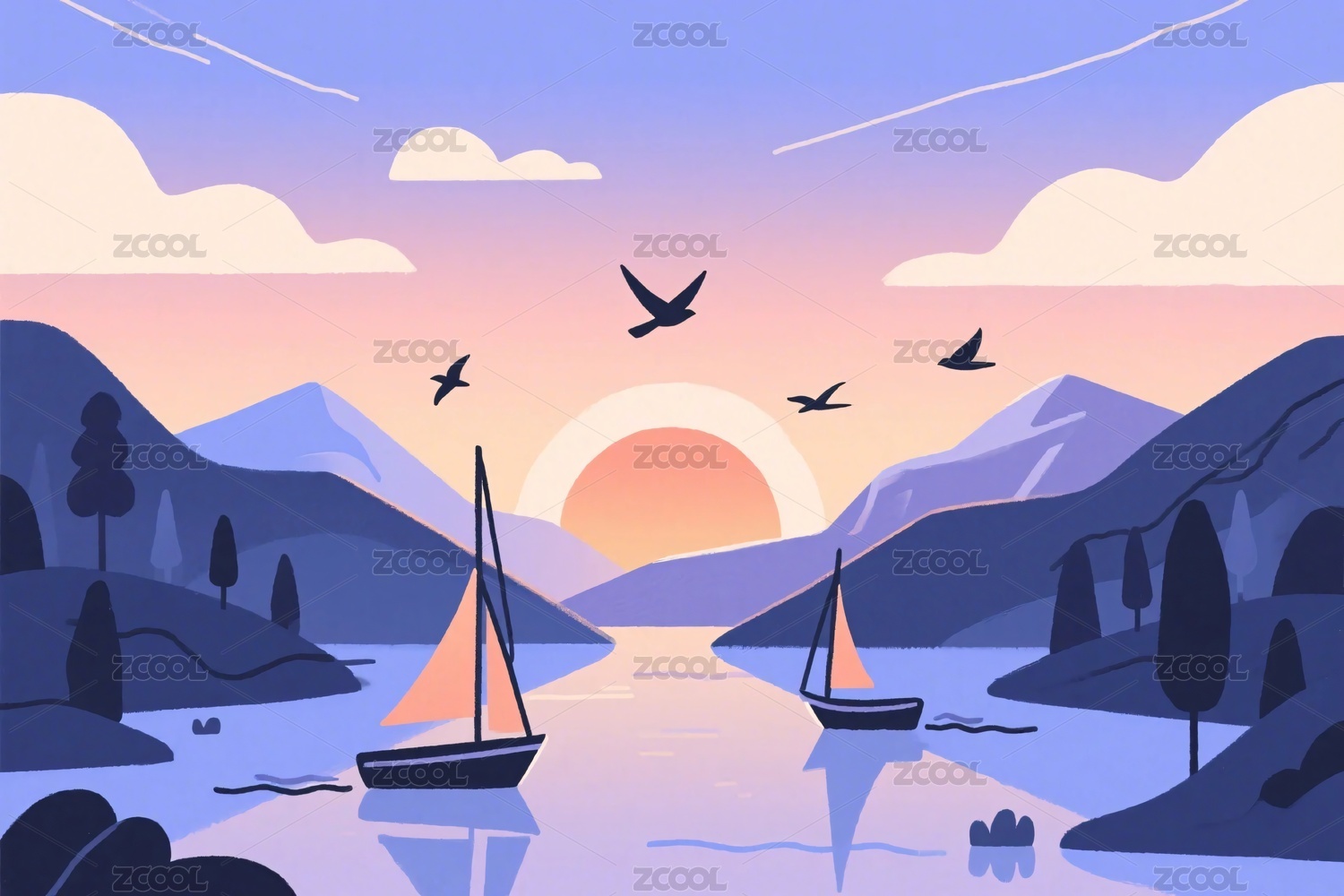 树木,夏季,天空,插画,设计,艺术,图形,自然,数字,夕阳