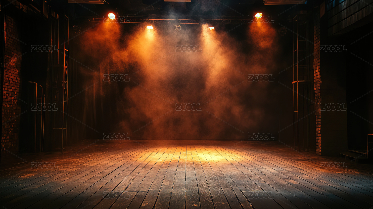 舞台灯光照射的木质地板