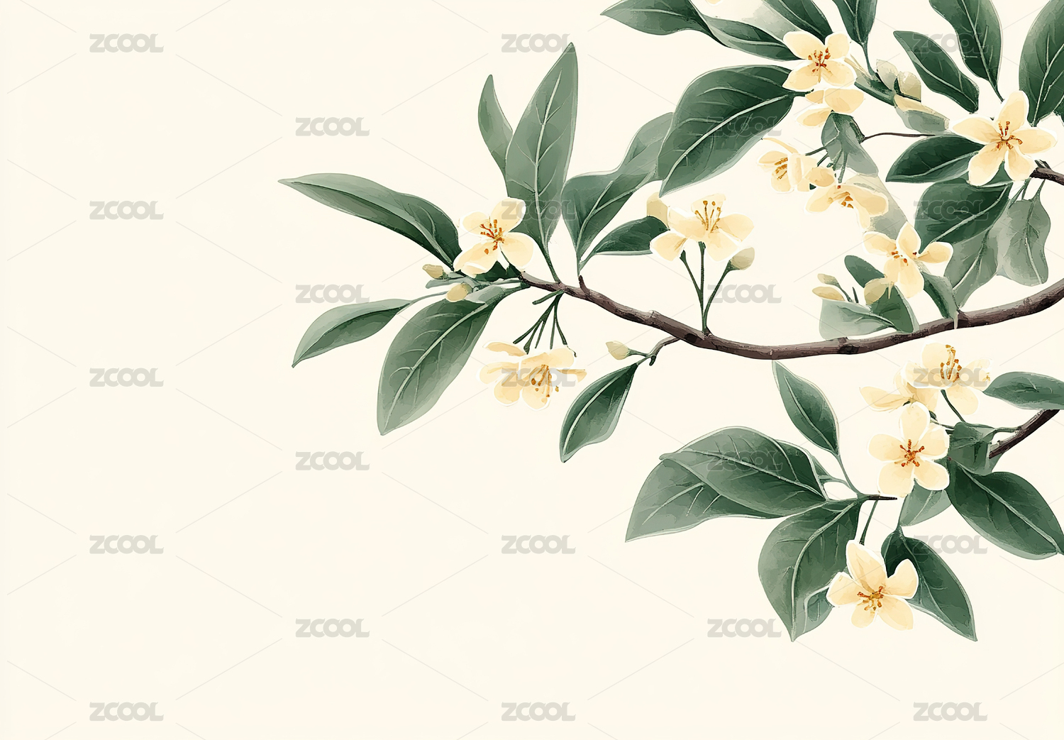 桂花枝叶清新插画