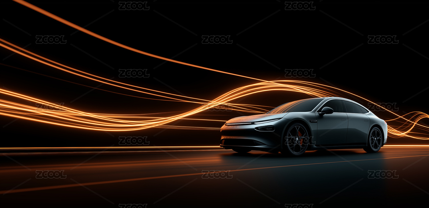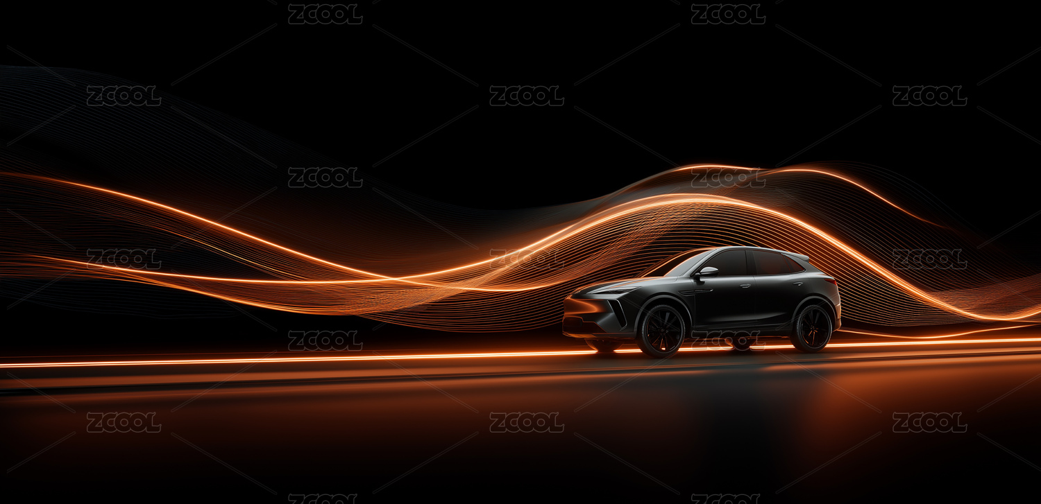 汽车旁橙色光带流动于黑色背景