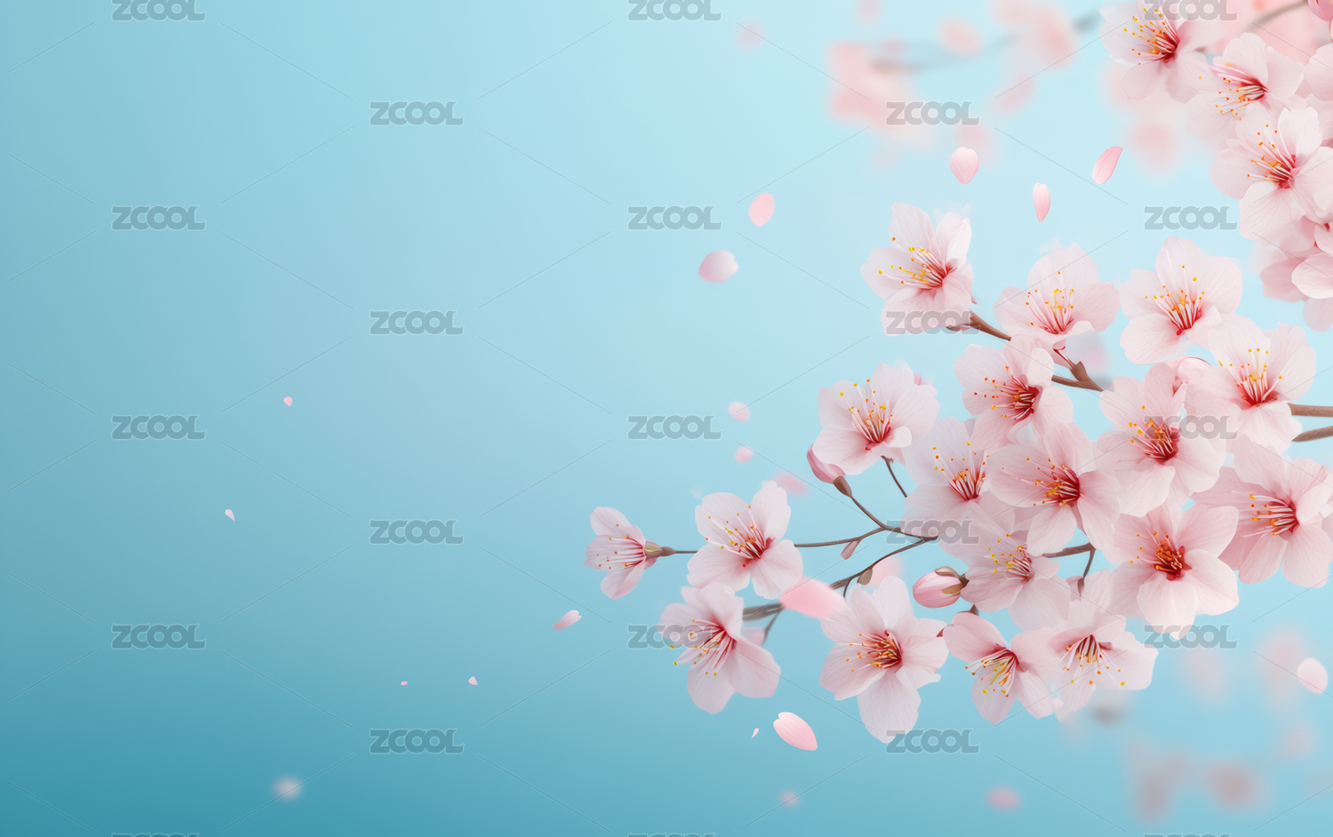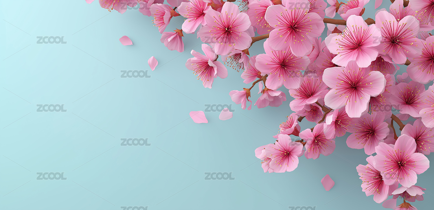 浅蓝背景下的粉色樱花