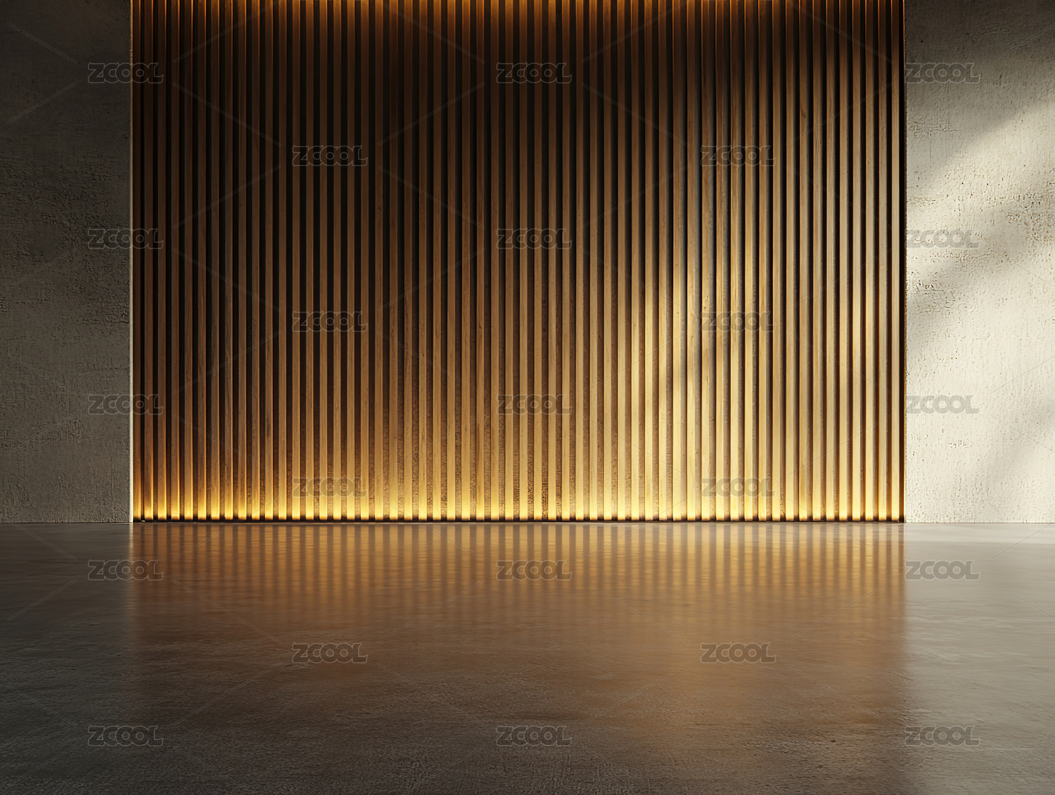 灯光照射下的深色木质墙壁